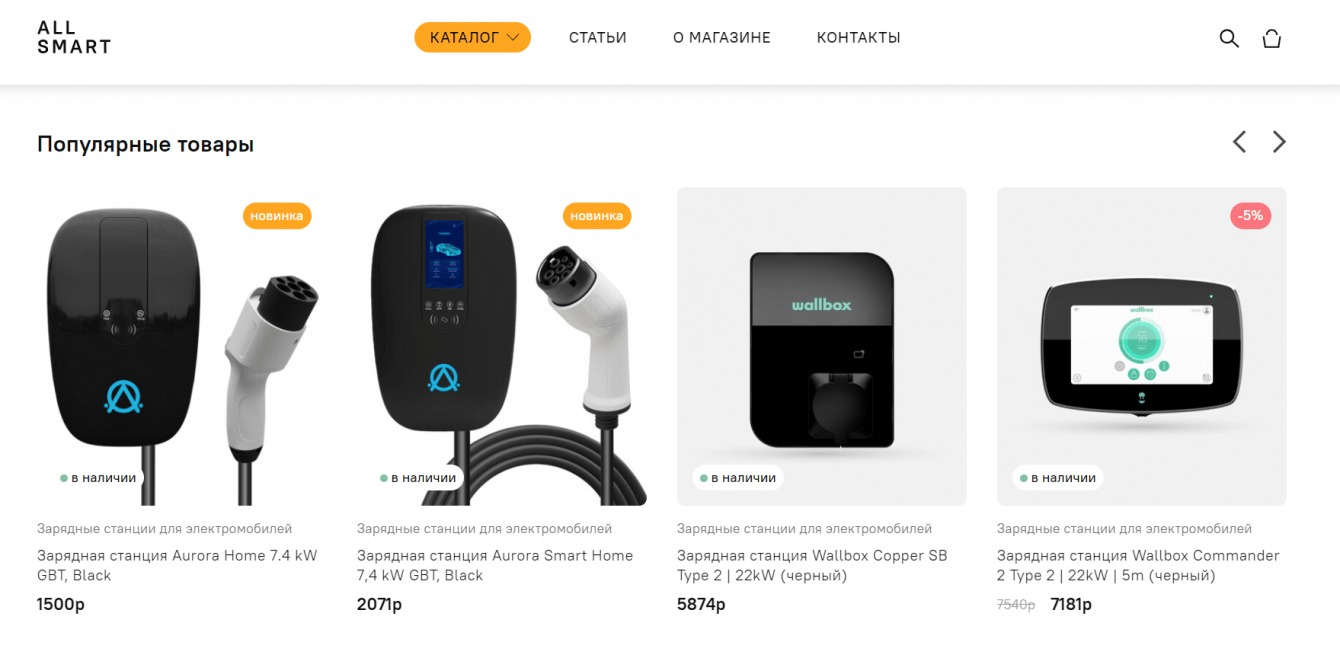 К нам обратился заказчик из Минска, продающий умную технику и зарядное оборудование для электромобилей. Требовалось создать интернет-магазин с современным дизайном, удобным каталогом, фильтрами для поиска, блогом и модулями оплаты и доставки. Дополнительно важной задачей было вывести сайт в топ органической выдачи по ключевым запросам и обеспечить SEO-оптимизацию.