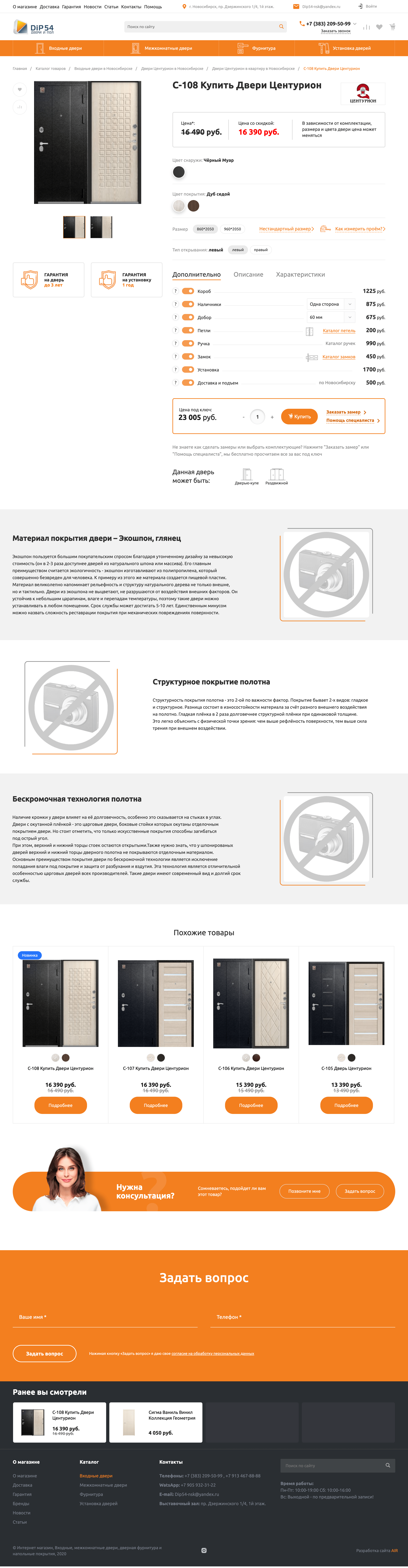- Удержать пользователя на странице товара, описывая и рассказывая о свойствах, материалах и производстве двери.