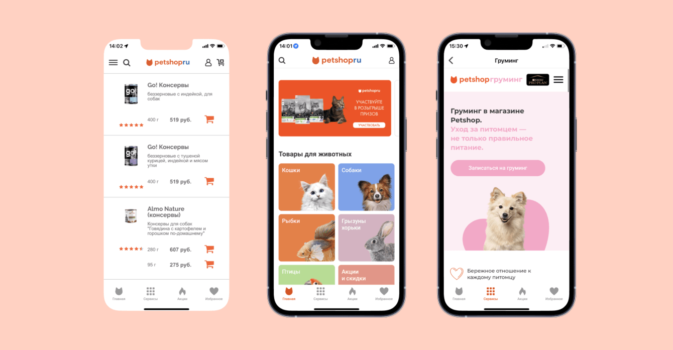 Интернет-зоомагазину Petshop в этом году исполняется уже 10 лет. Развиваясь целую декаду как eCommerce проект, Petshop имеет развитую IT-инфраструктуру. Поскольку от нас требовалась только разработка мобильных приложений под iOS и под Android, нам не пришлось делать серверное ПО и развертывать API. Это позволило выкатить первую версию в Бета-релиз в самое кратчайшее время. А позже и релиз для всех пользователей в основных сторах, среди которых на текущий момент App Store, Google Play Store, а также Huawei App Gallery.