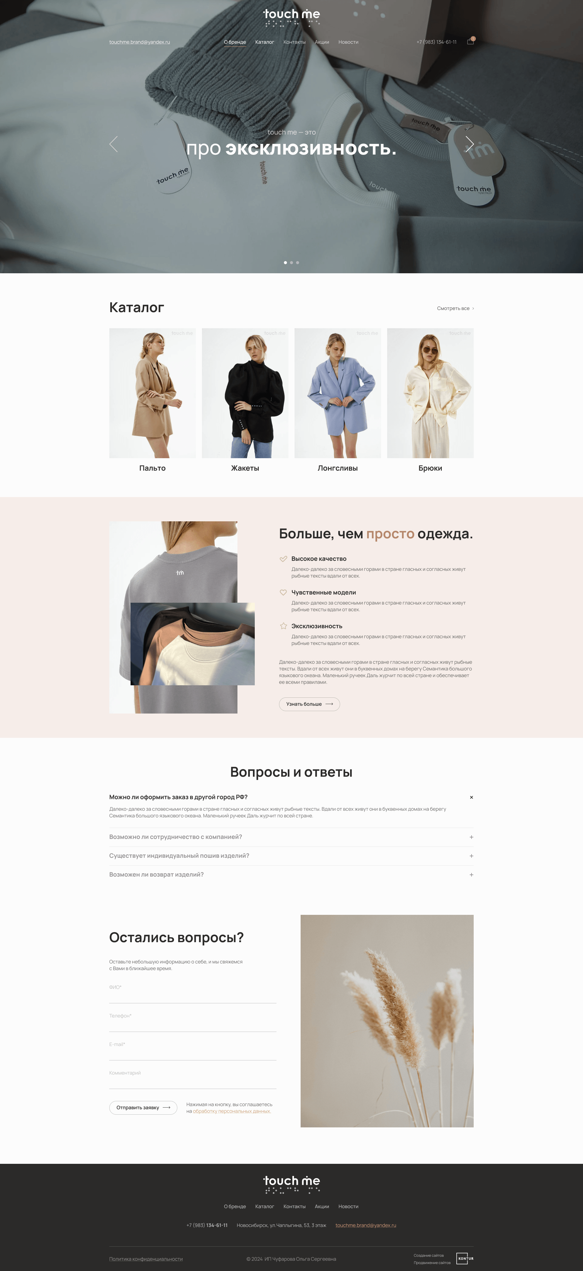 Реализовать уникальный сайт с каталогом для продажи эксклюзивной одежды из натуральных тканей.