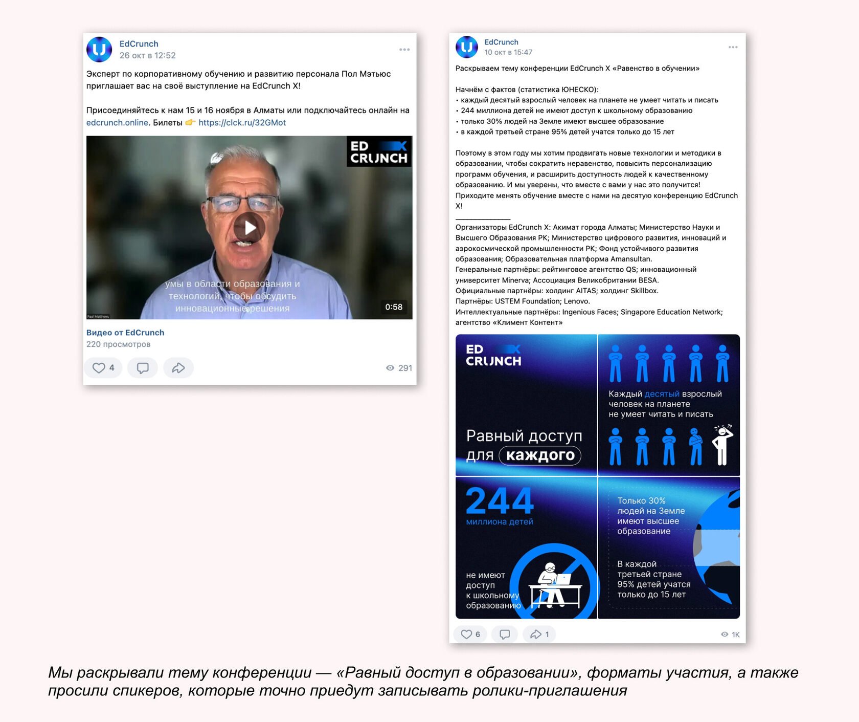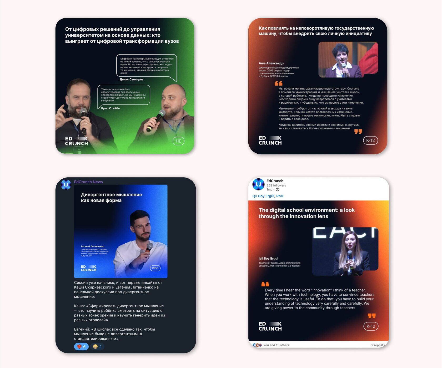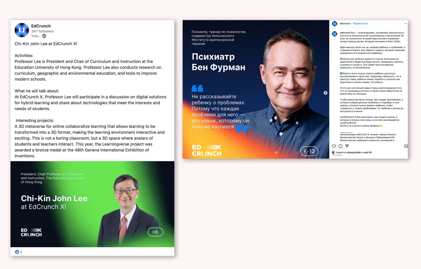 – Продвигали конференцию через спикеров — с помощью видеоприглашений и карточек «Я — спикер EdCrunch».