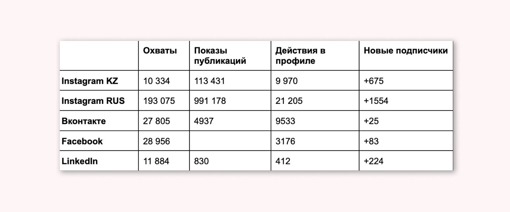 Мы вчетвером сделали весь контент, рекламу и рассылку для самой большой образовательной конференции в Европе и СНГ. За время нашей работы соцсети выросли в цифрах: русский аккаунт Инстаграма* вырос на 2049 подписчиков, а казахский — на 1076. Мы продали билетов на $28 000, и вели репортаж в соцсети в режиме реального времени.