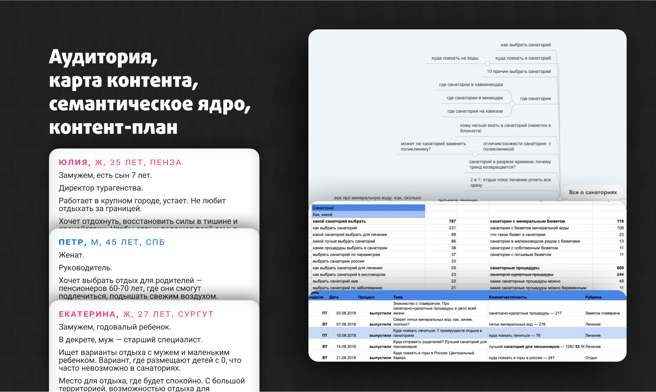 2. Создали карту контента после погружения в продукт и боли ЦА, а чтобы точно не промахнутся с выбором тем — собрали семантическое ядро из реальных запросов, по которым пользователи ищут информацию в поисковиках. В ядре для сантория было более 2000 запросов. Они стали ключами в статьях.