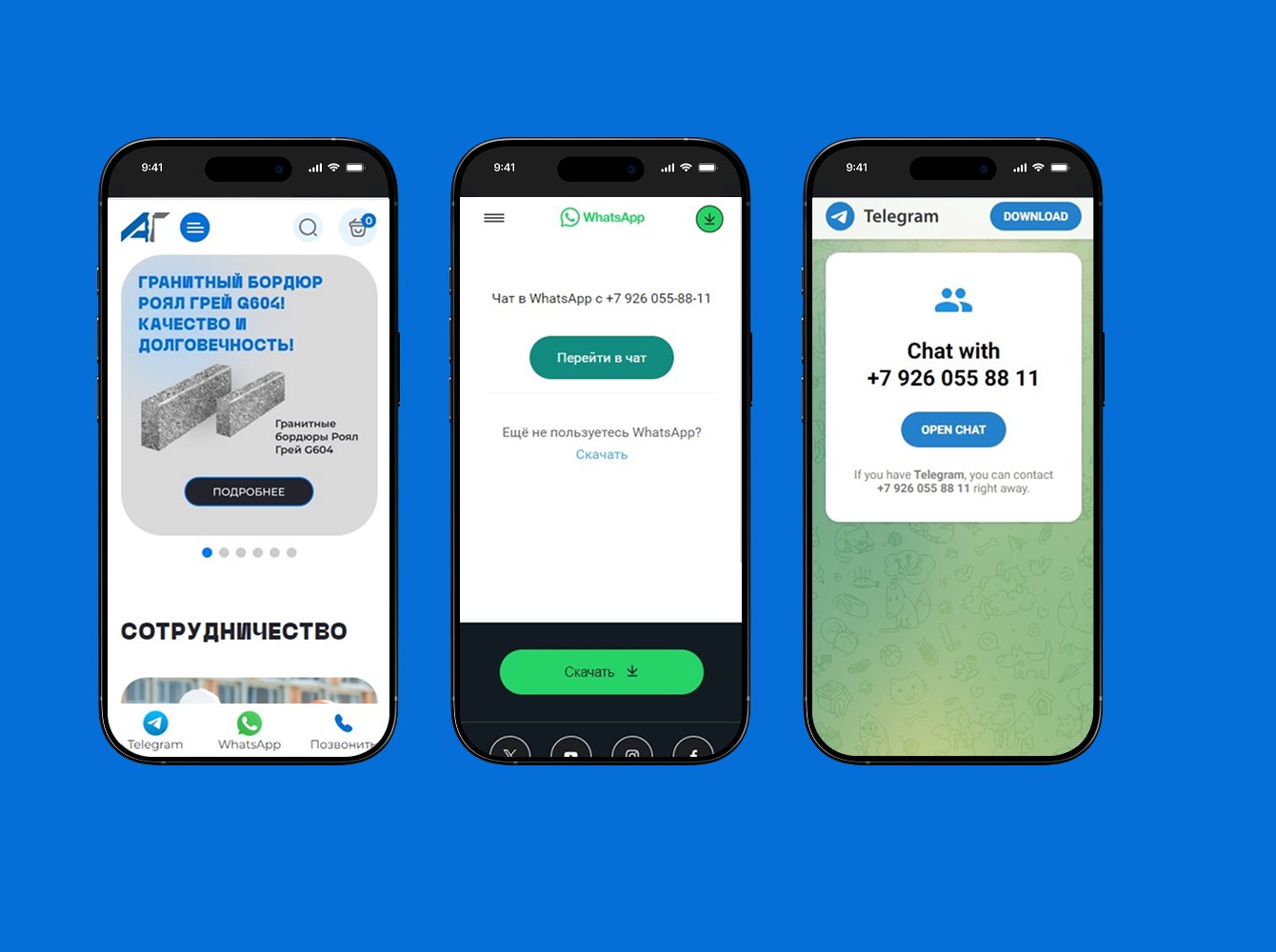 Покупатель может сделать заказ разными способами — вдумчиво изучать ассортимент и добавлять товары в корзину и оформить заказ, воспользоваться формой обратной связи, написать в мессенджер или просто позвонить. Что увеличивает конверсию и снижает показатель отказов.