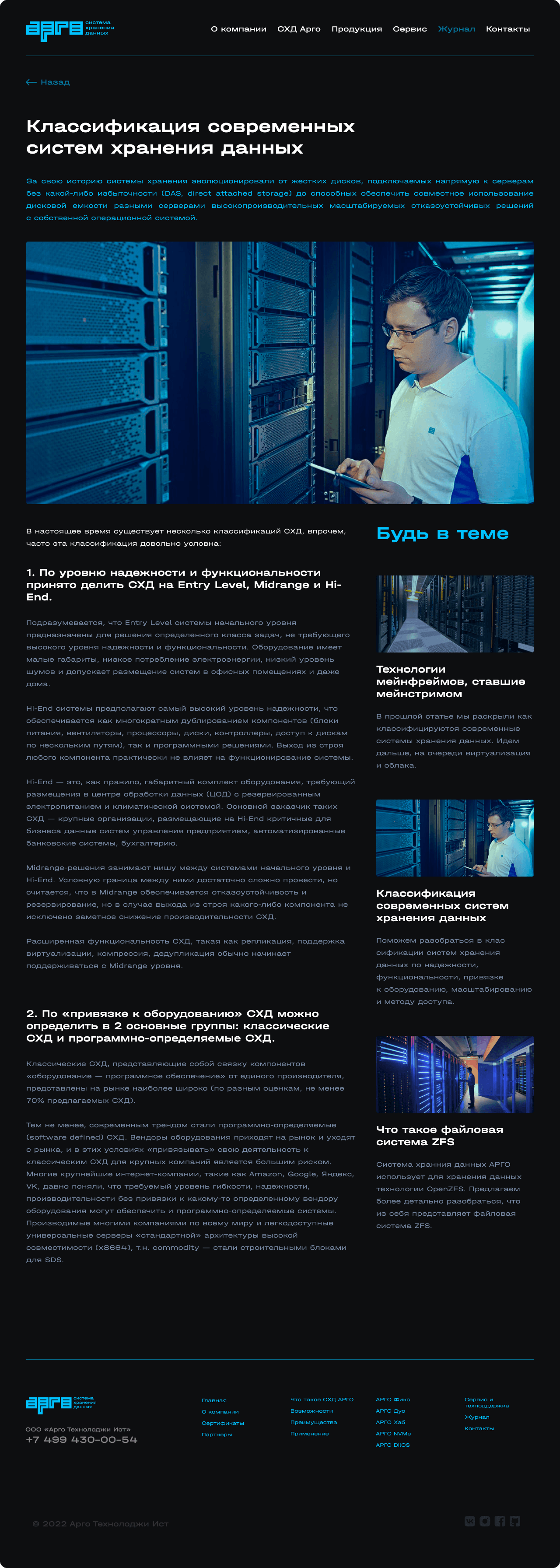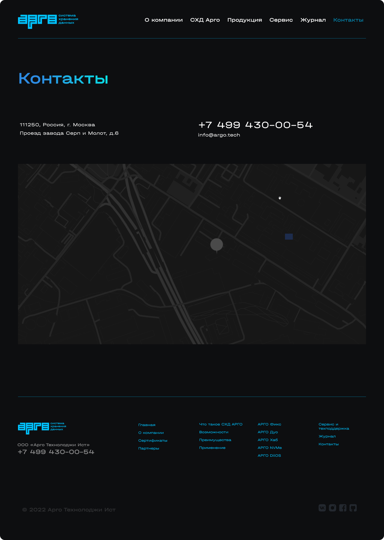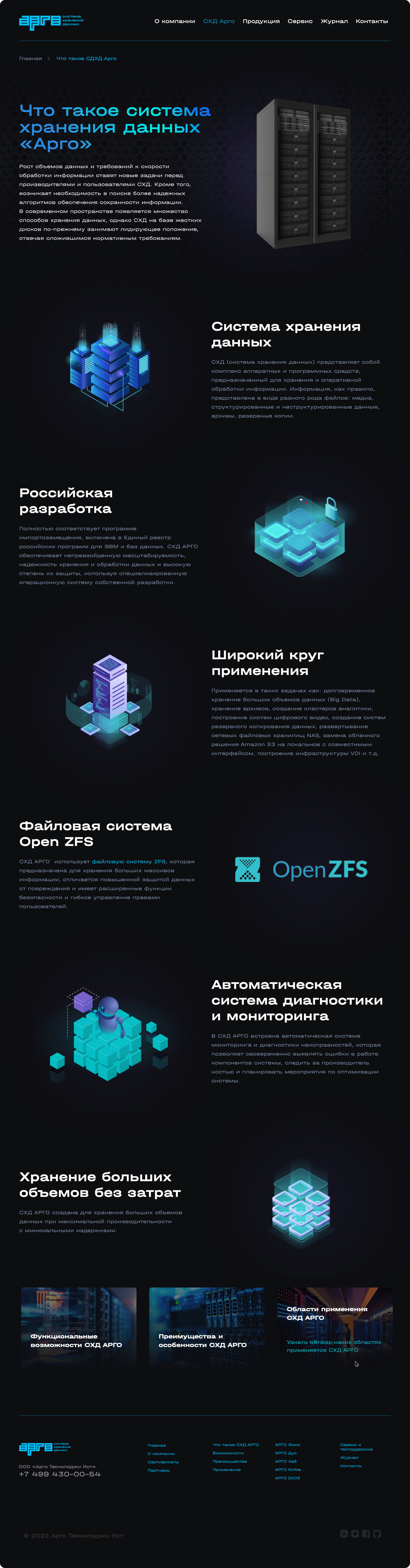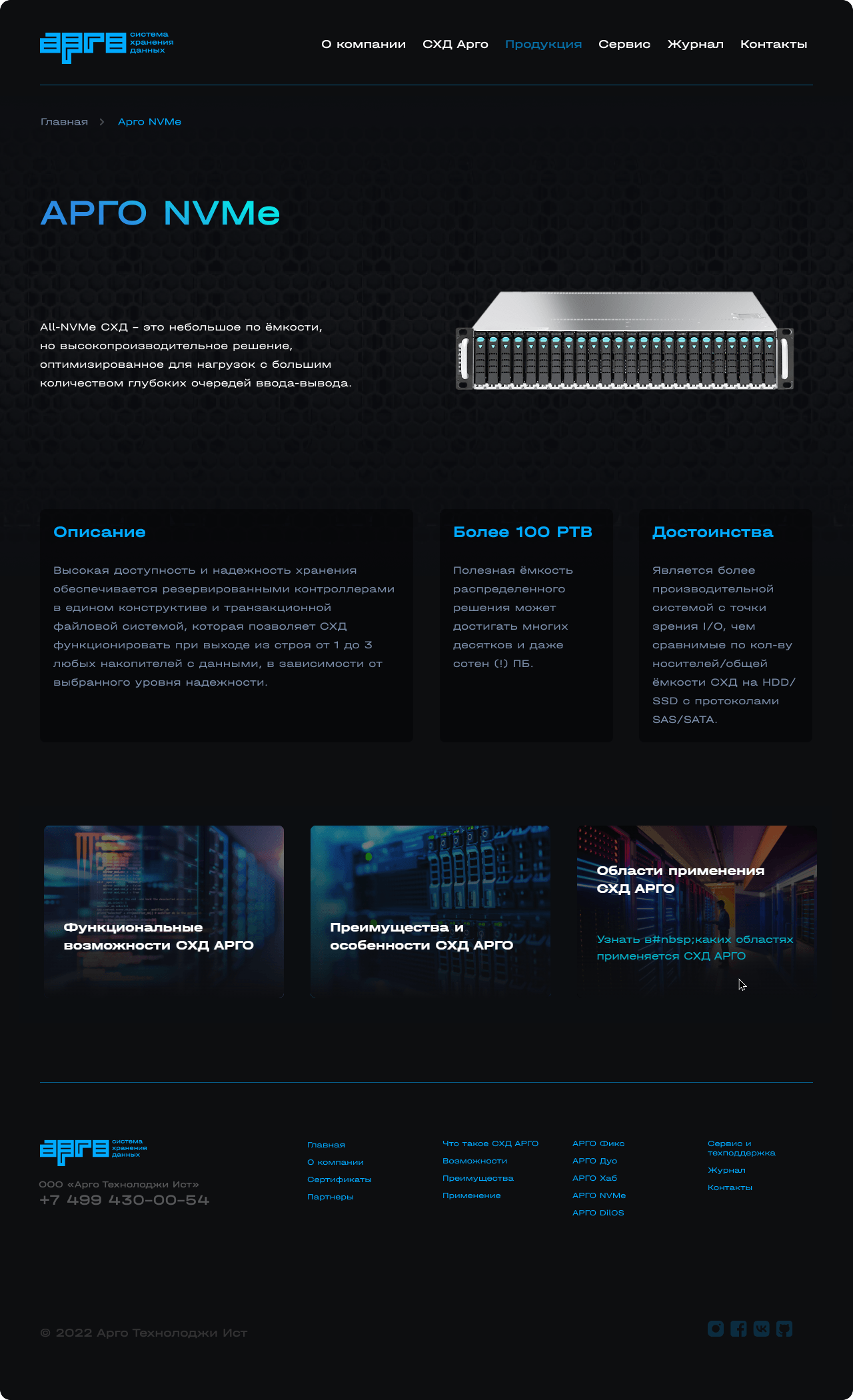 На основе фирменного стиля, описанного в брендбуке, разработать адаптивный сайт для знакомства потенциальных заказчиков и инвесторов с линейкой продуктов СХД АРГО их назначением, функциональными возможностями и преимуществами.