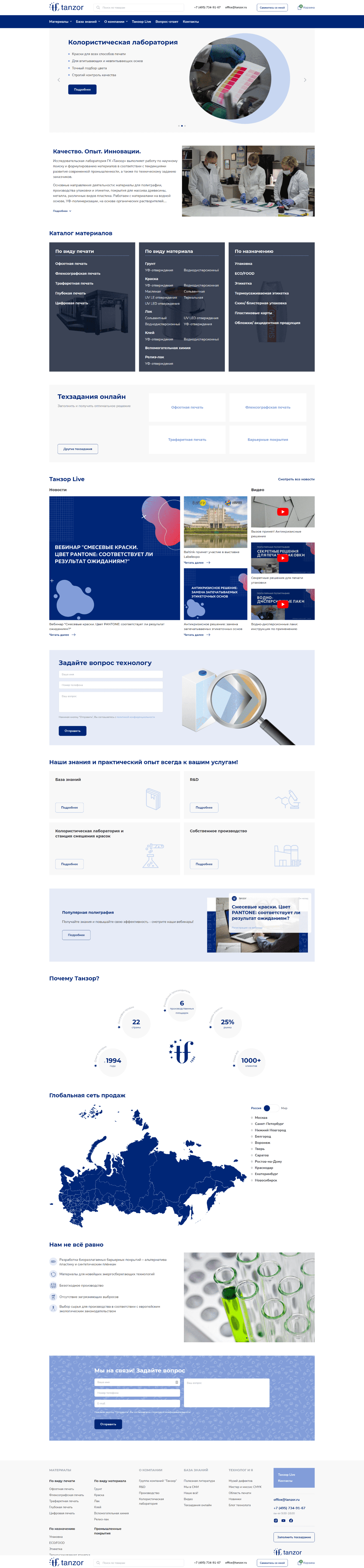 Интернет-витрина "Танзор" – сайт российского поставщика лакокрасочных материалов. Задачей было разработать сайт в минималистичном стиле с функционалом информационного портала. Чтобы пользователям было удобно ознакомиться с продукцией, получить полезную информацию и оформить заявку.