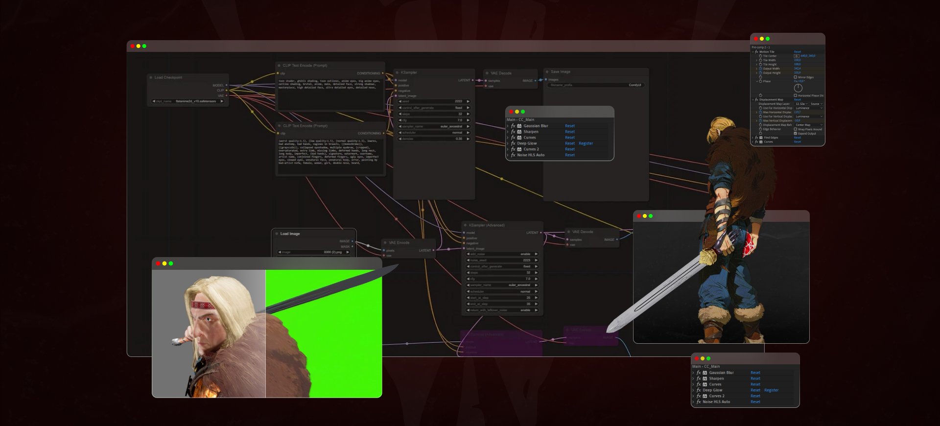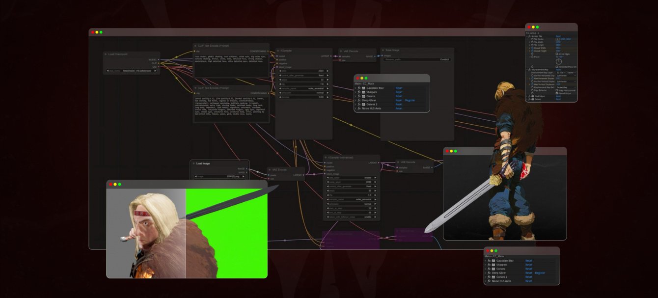 Для придания стилизации персонажам использовалась связка из нейросетей ComfyUI и EbSynth.
