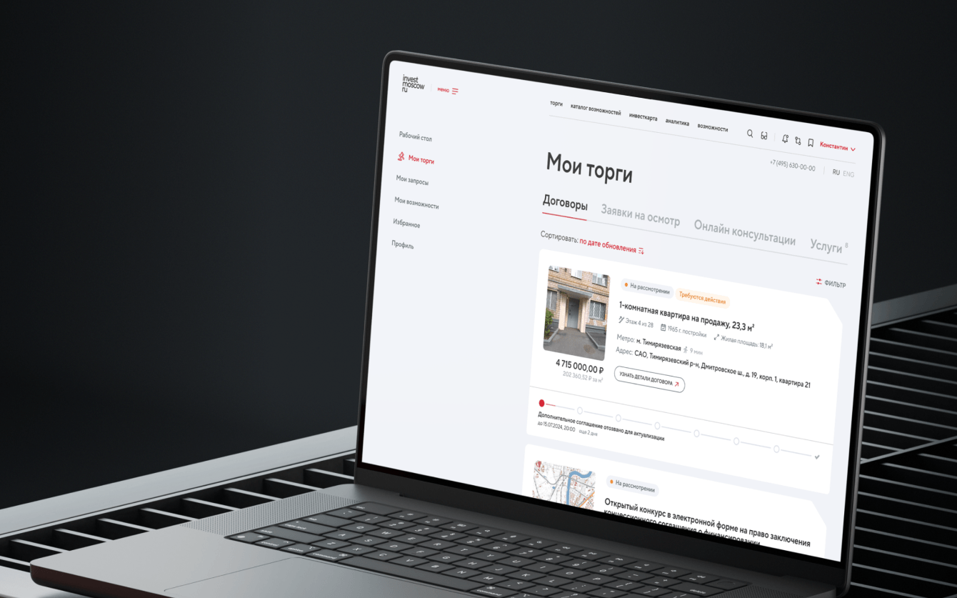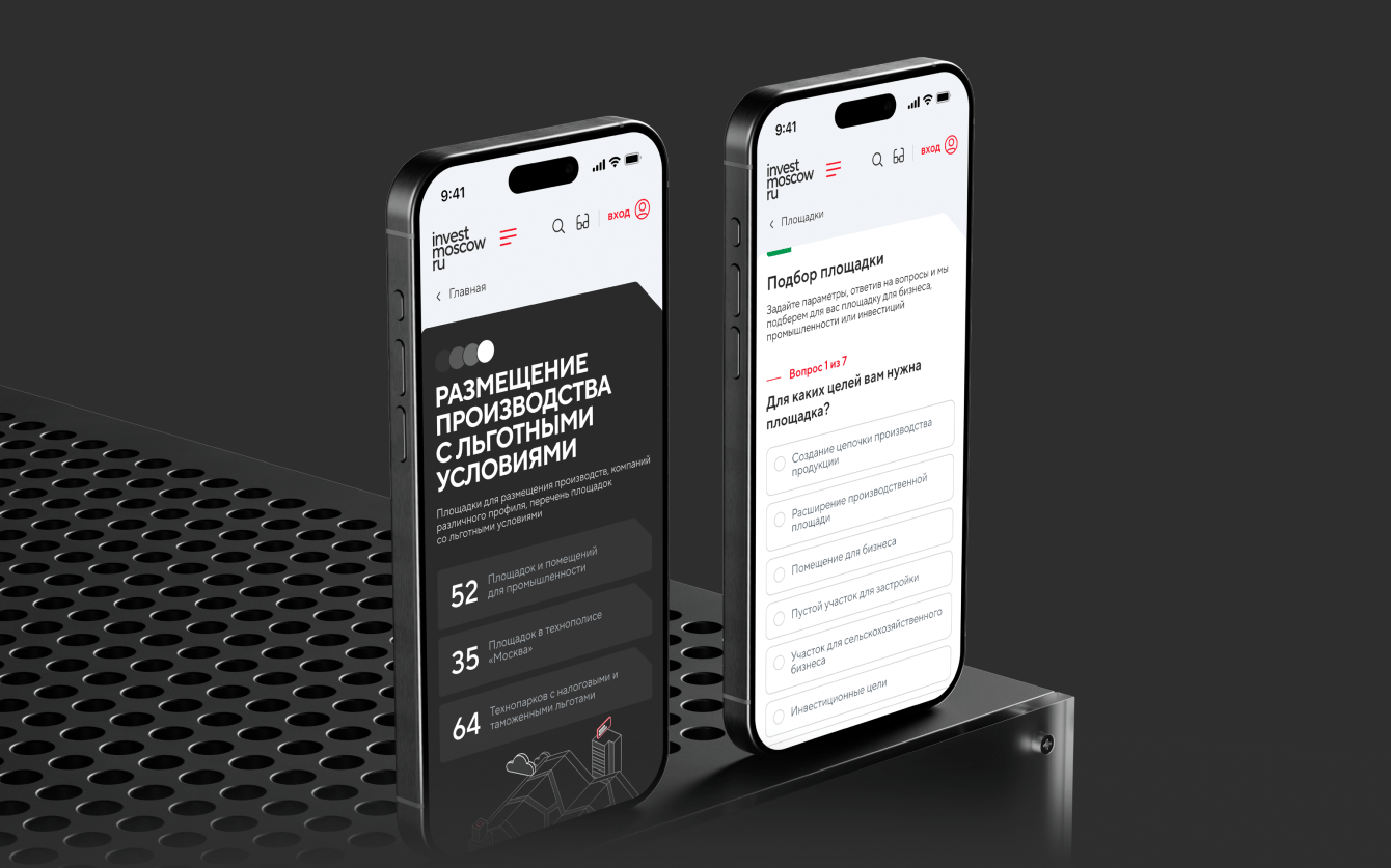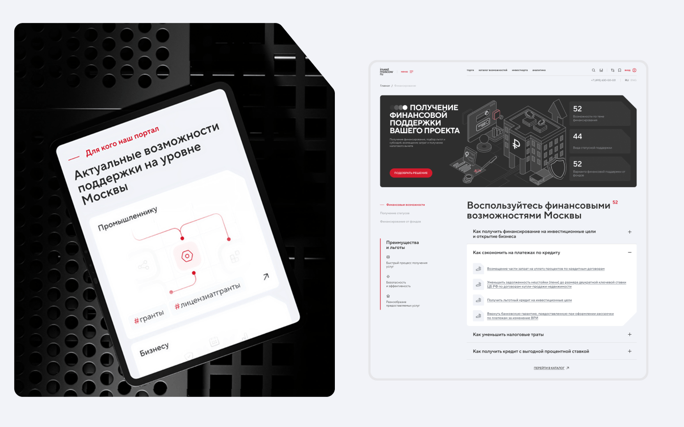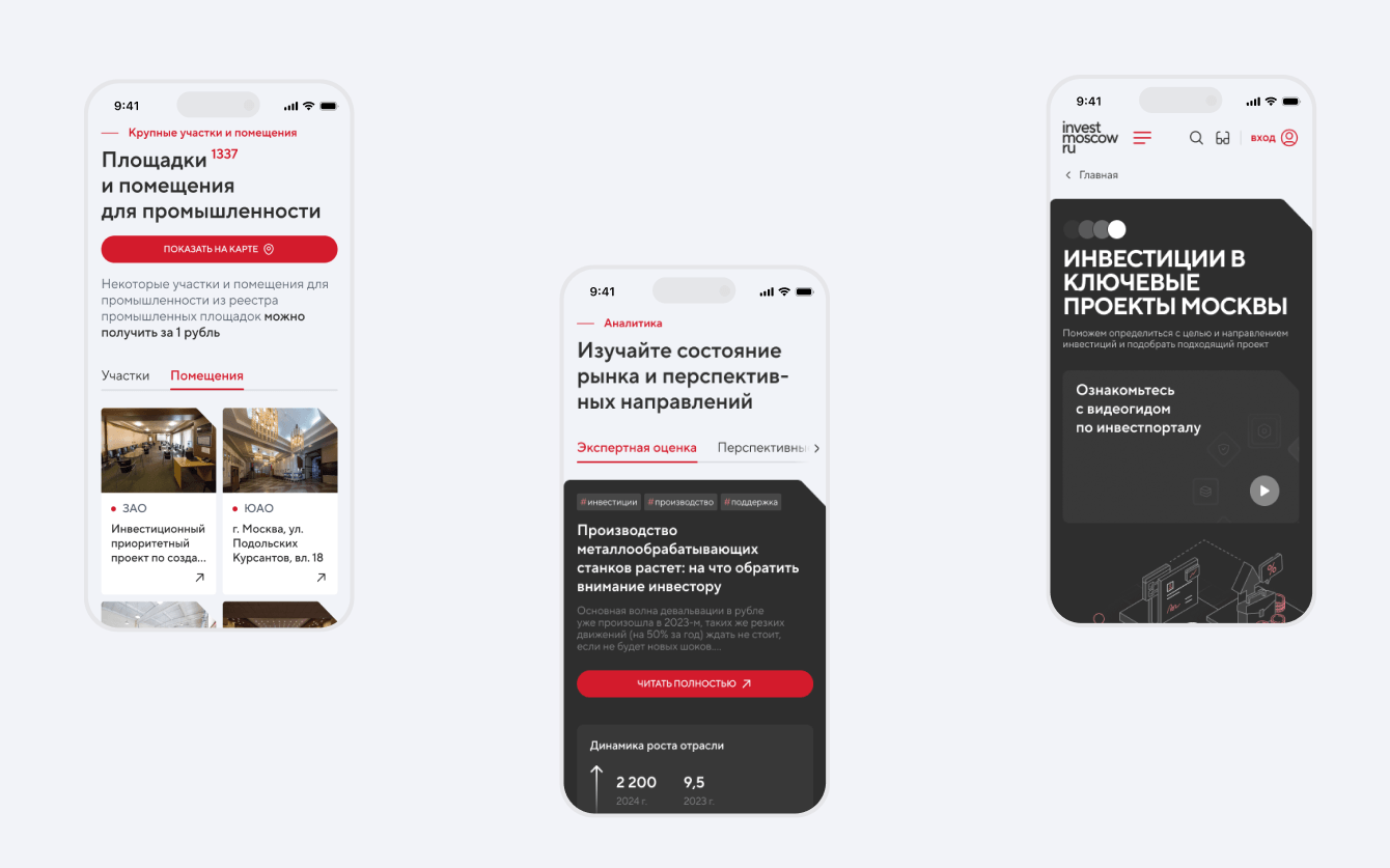 - проектирование интерфейсов для ключевых разделов: главная страница, каталоги, сервисы, инвестиционная карта;