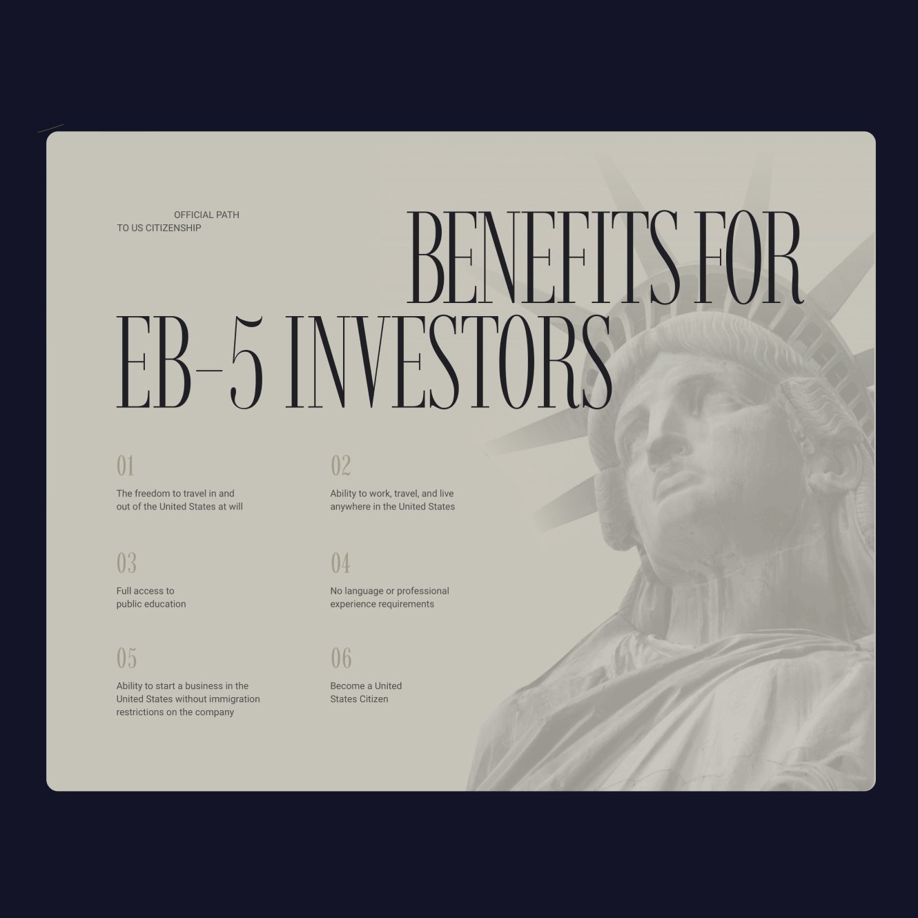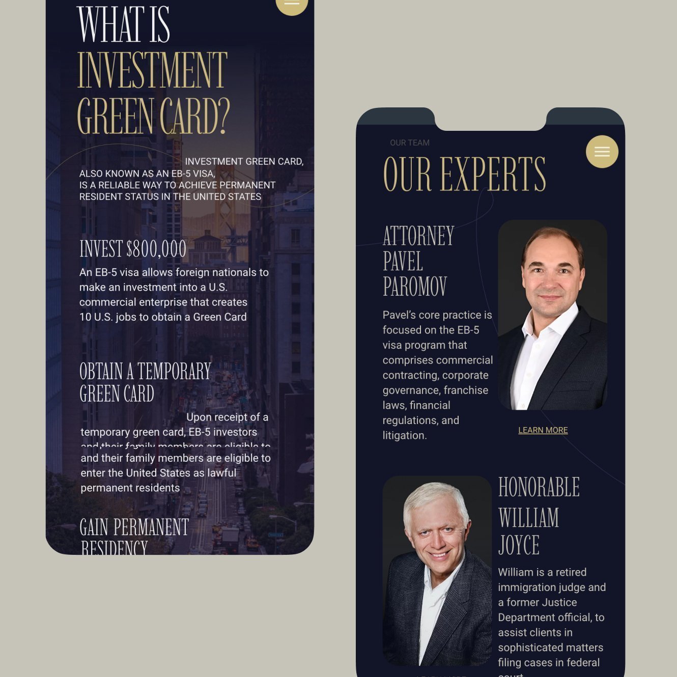 Компания, оказывающая консалтинговые услуги в сфере получения инвестиционной визы США обратилась в DVIGA за разработкой корпоративного веб-сайта.
