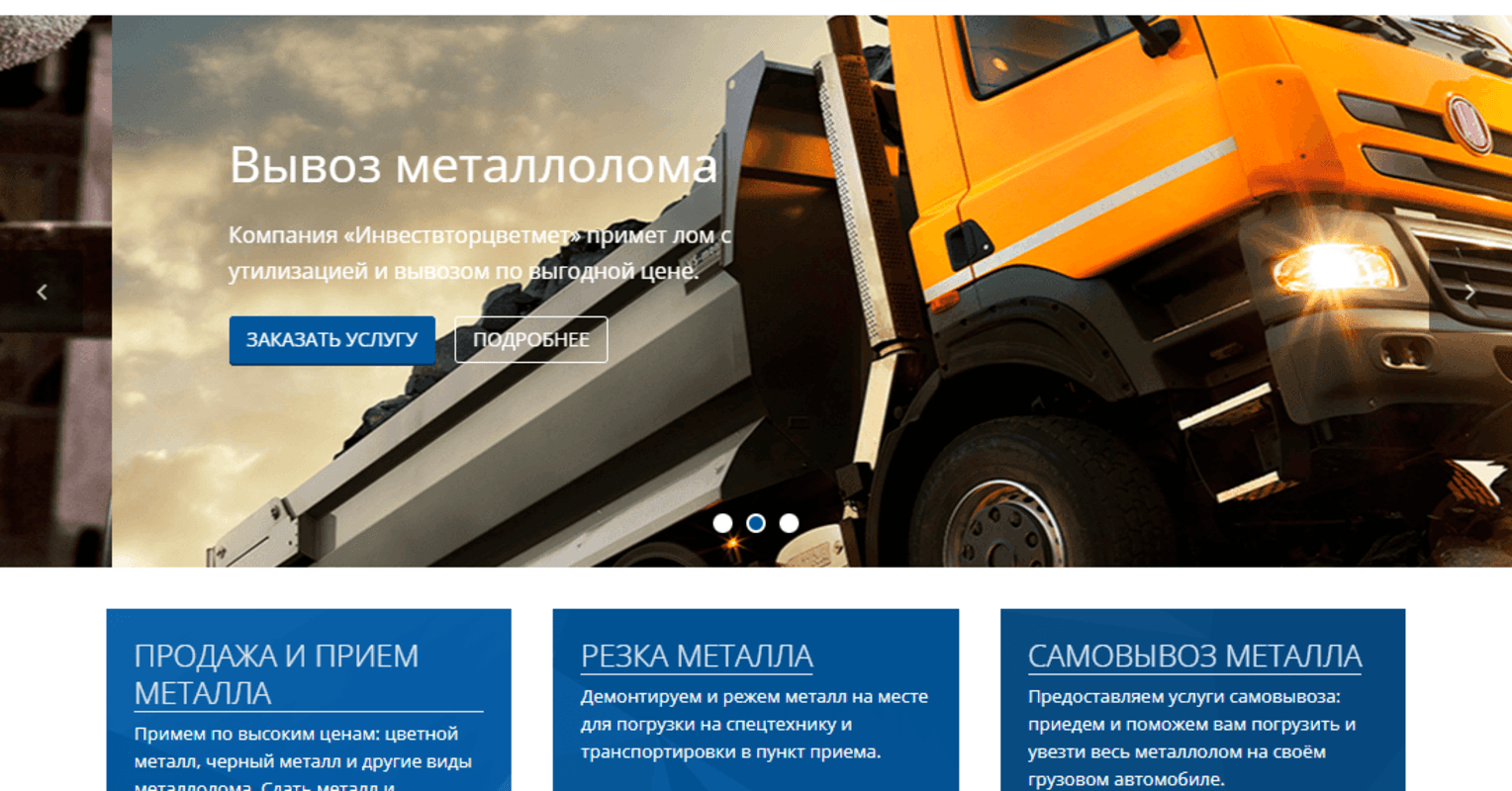 Для "ИНВЕСТВТОРЦВЕТМЕТ" была полностью настроена структура будущего сайта, а также внесена вся необходимая информация.