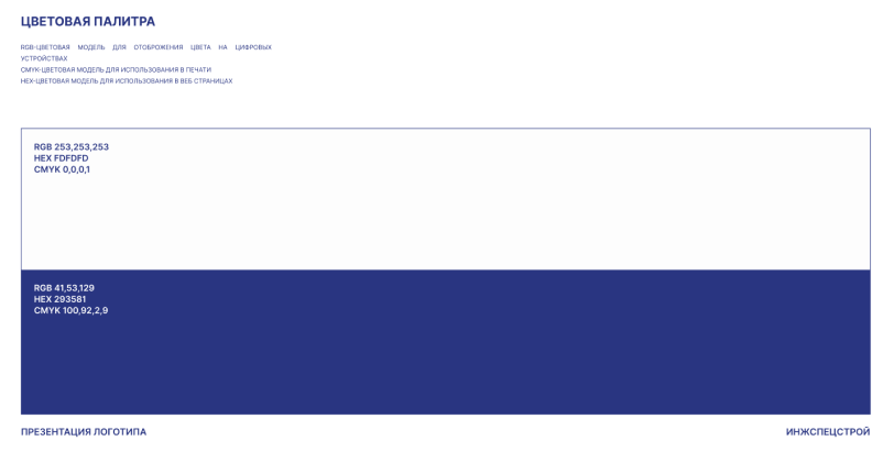 В выборе шрифта мы ориентировались на технологичные варианты. По цветовой гамме остановились на темно-синей, т.к. это любимая палитра гос. компаний, которые являются основными заказчиками для нашего клиента, поэтому при тендере будет проще привлечь к себе внимание, мимикрируя под гос. компании.