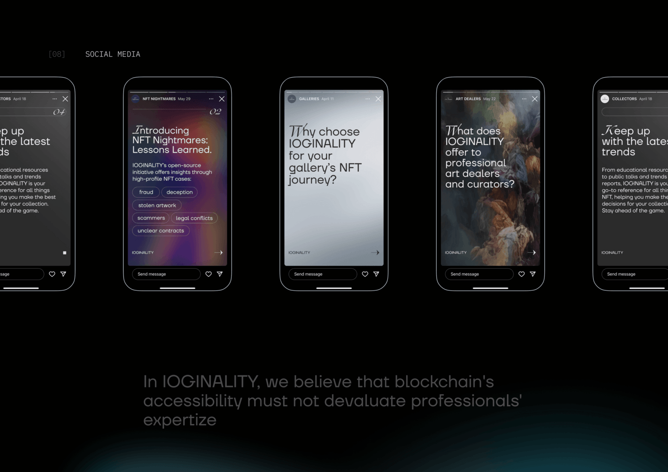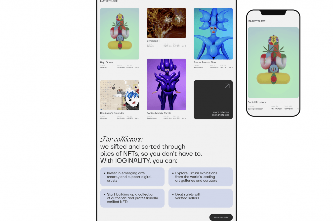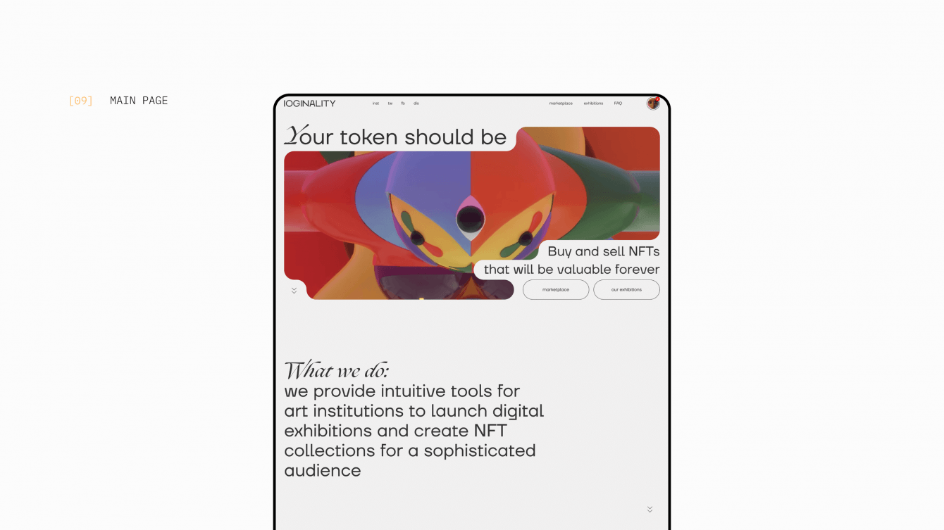 IOGINALITY — это платформа для художественных галерей, коллекционеров и арт-дилеров по всему миру, которое позволяет запускать виртуальные выставки, создавать и продавать коллекции в виде NFT. Оно создано для галерей современного искусства и предоставляет доступ к художникам со всего мира.