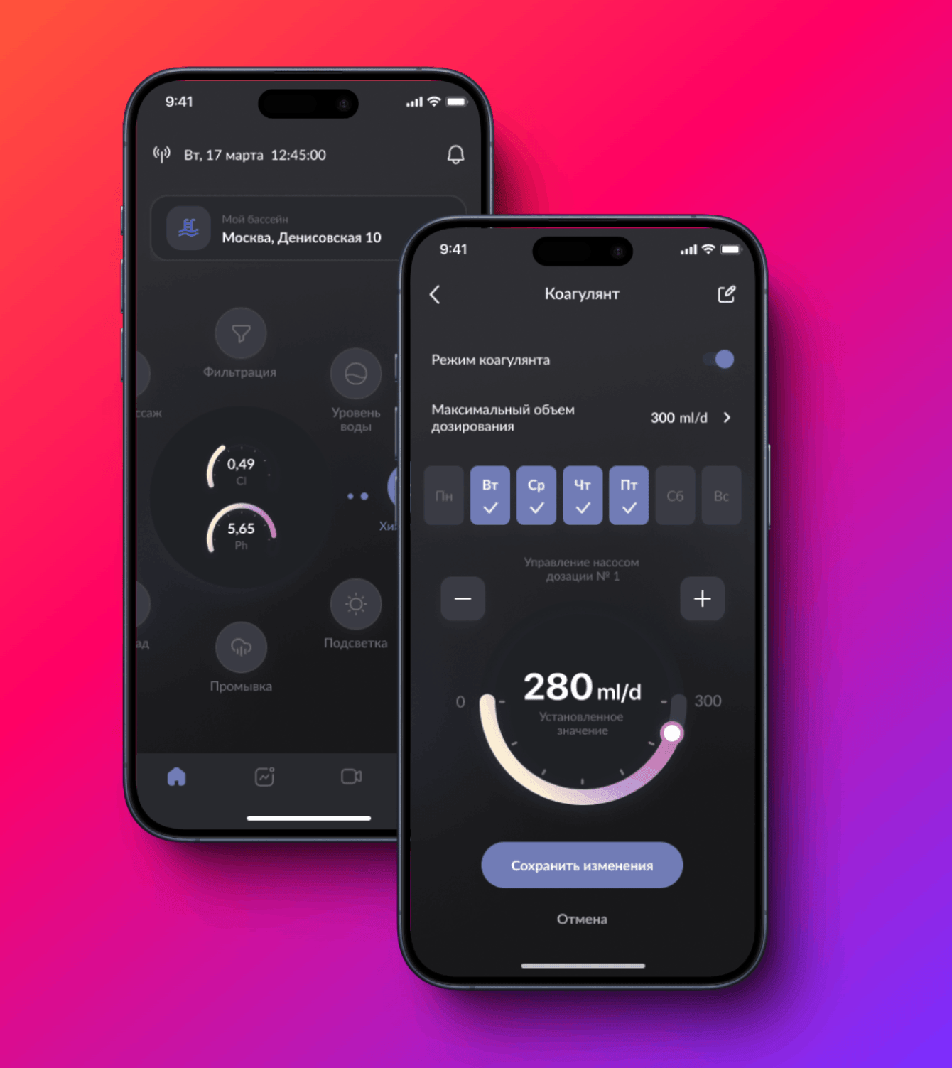Задача: Разработать новое мобильное приложение для пользователей, которые установили оборудование нашего клиента на свой бассейн