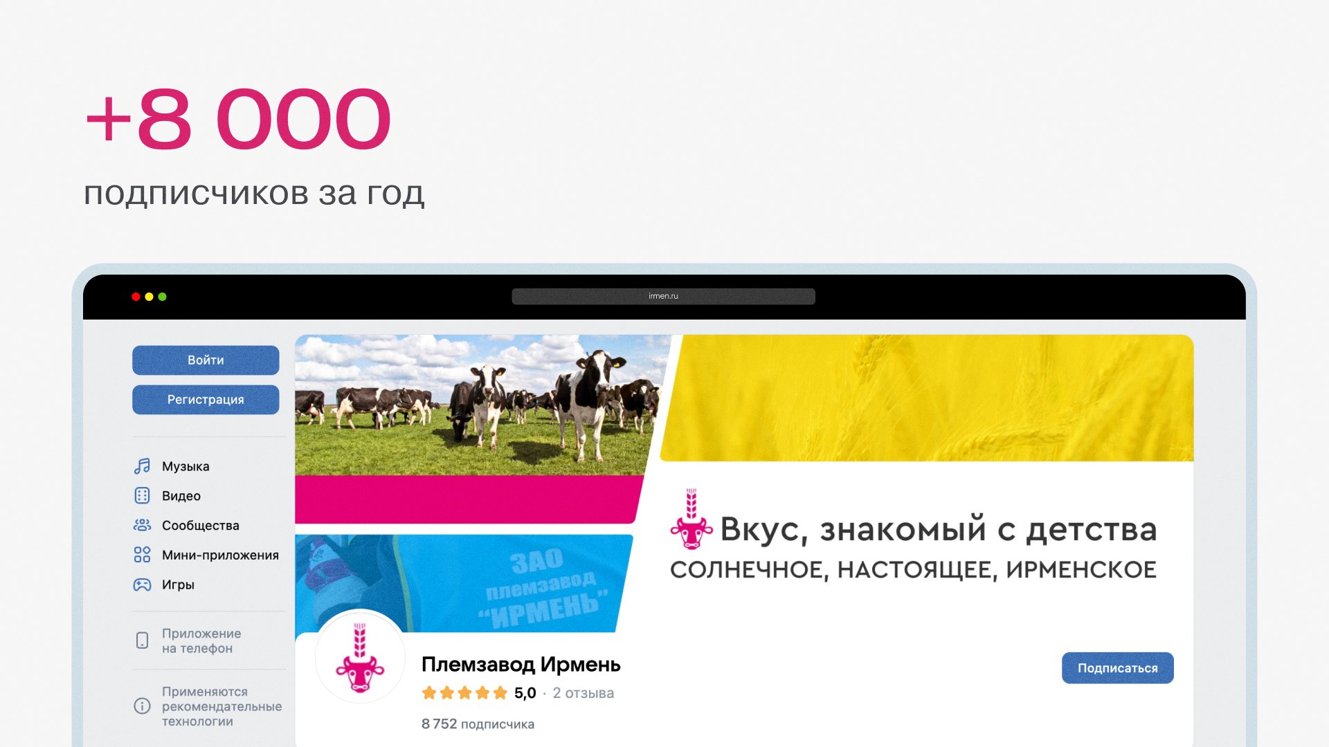 Мы привели в сообщество племзавода «Ирмень» более 8000 человек. Наши рекламные кампании дают стабильный рост аудитории.