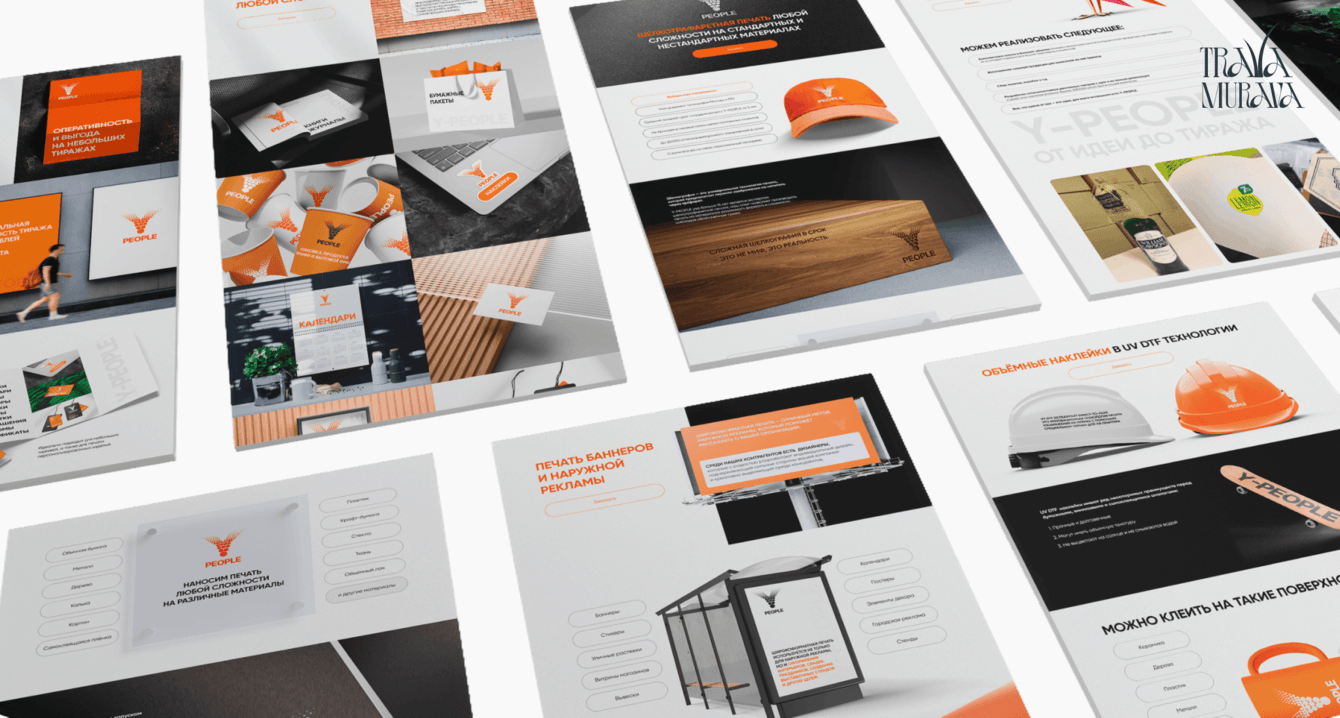 Современный и стильный сайт y-people.ru, созданный для привлечения новых клиентов в типографию, а также: