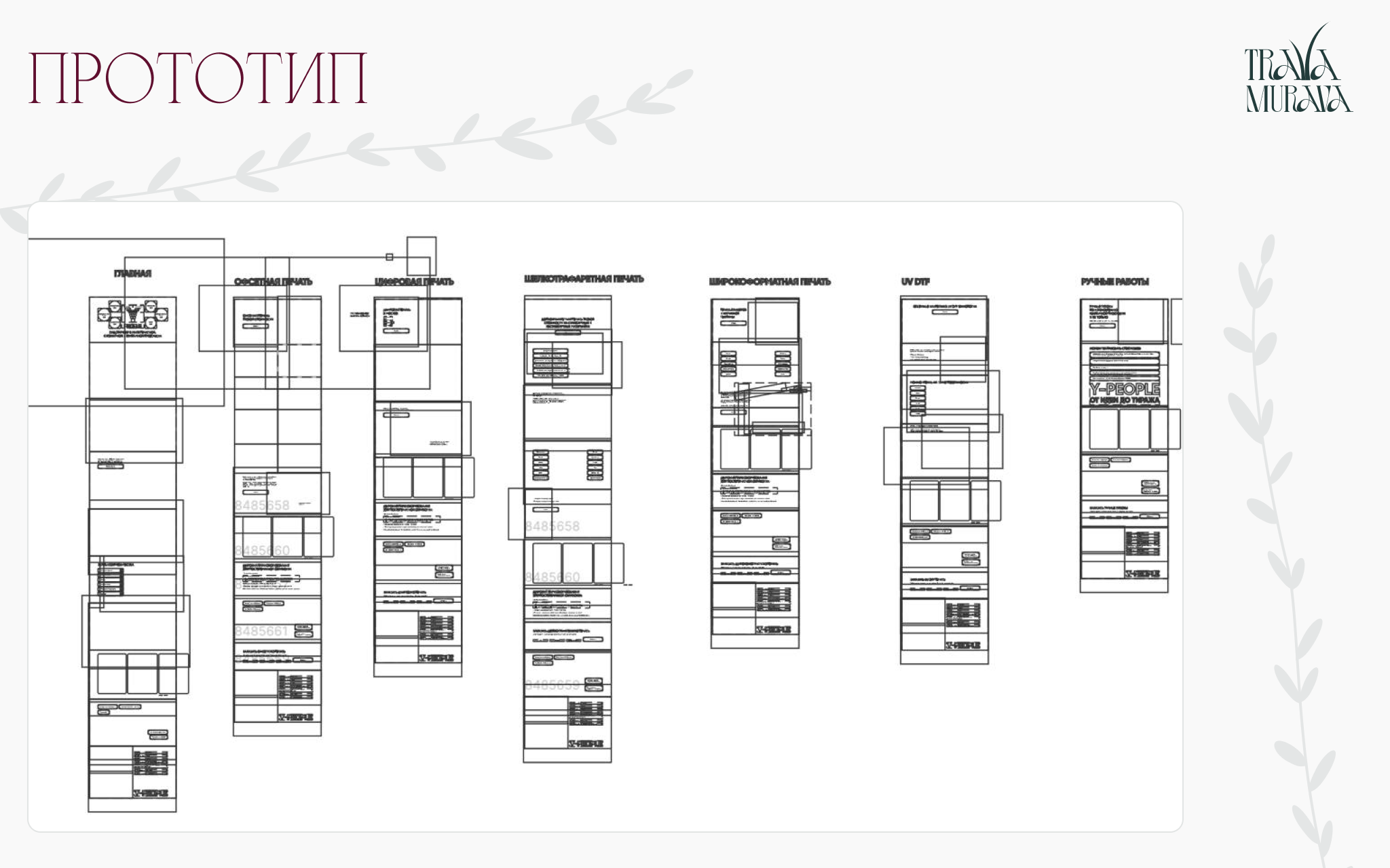 Еще на первом этапе мы узнали, что ничего, кроме нового названия у типографии нет. Фотографий и видео готовых работ минимальное количество, а логотипа нет и вовсе. Никакого. Только глобальная миссия и идея компании, которую хочется в нём увидеть.