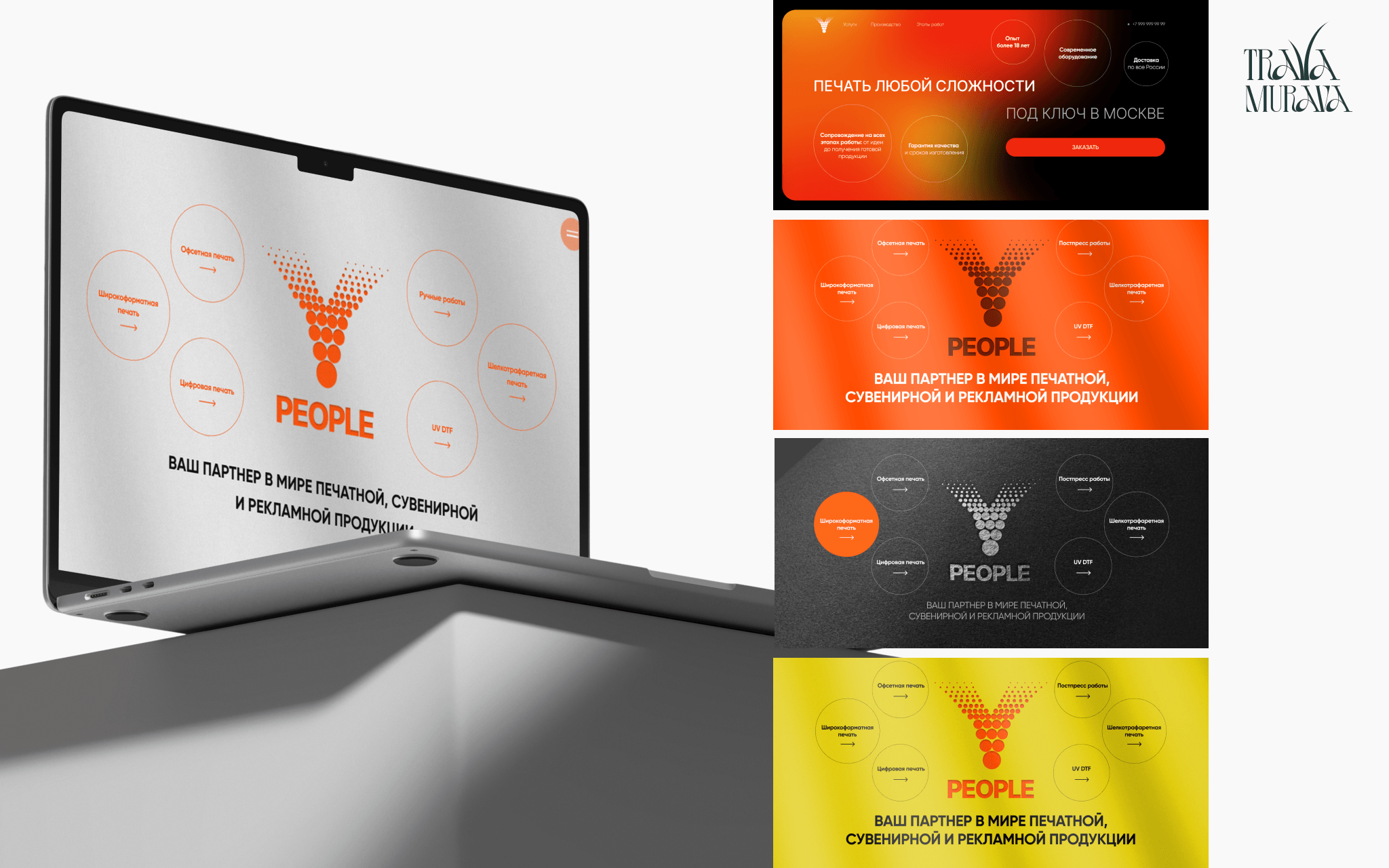 Современный и стильный сайт y-people.ru, созданный для привлечения новых клиентов в типографию, а также: