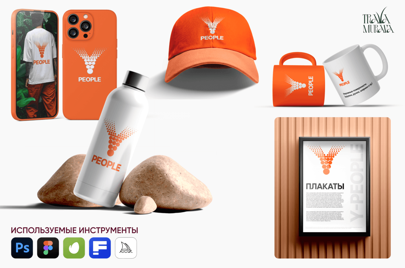 И у нас возникла идея соединить смысл названия Y-PEOPLE и важное для типографии понятие воедино. Решили сделать так, чтобы Y начинался из одной точки и рассыпался на множество маленьких - метафора о том, что изначальная точка - это одна типография, которая сотрудничает с огромным количеством компаний и клиентов, для которых создавалась различная печатная продукция.