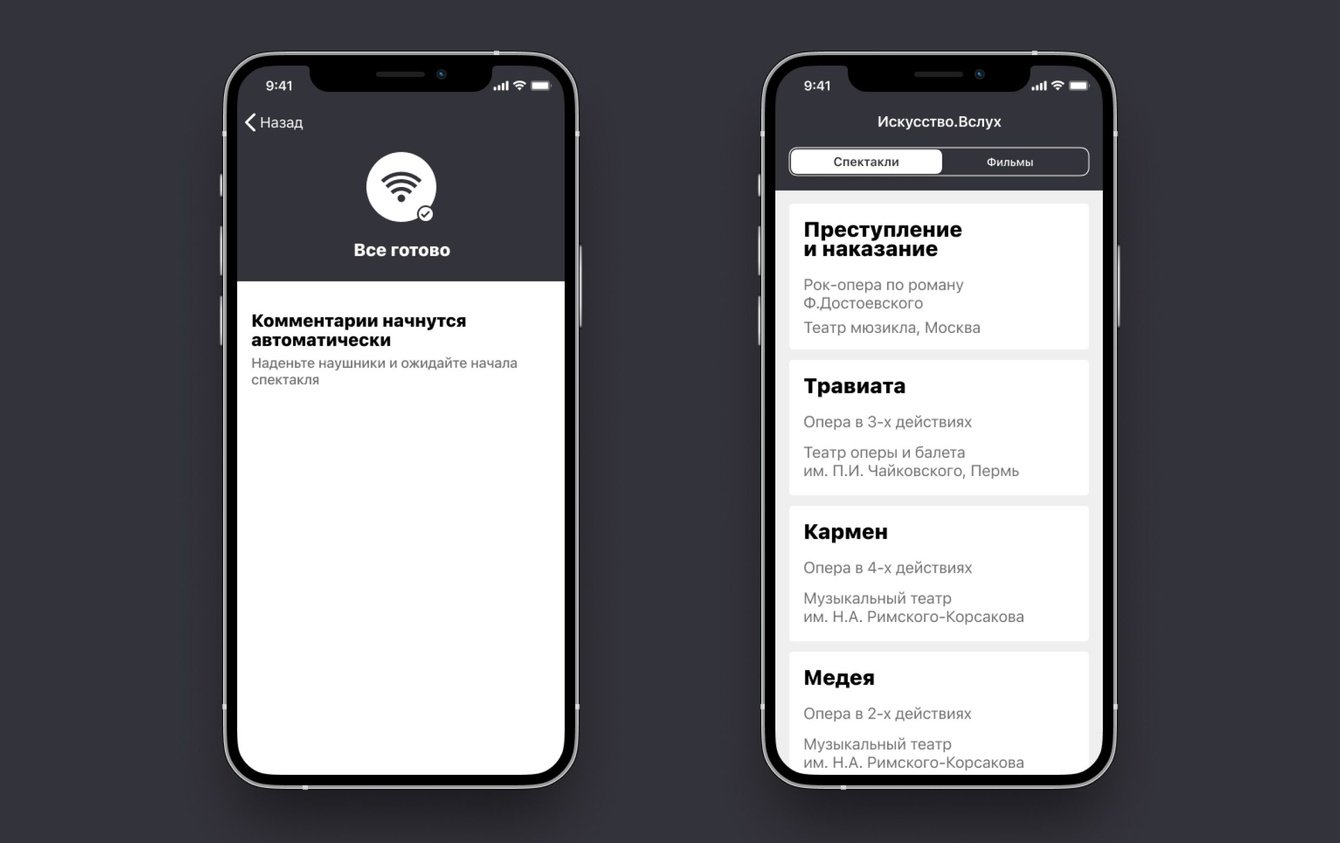 Тифлокомментарии — специально подготовленное аудио-описание сцен, действий и объектов, которое помогает людям с нарушением зрения целостно воспринимать информацию. С помощью приложения «Искусство.Вслух» слабовидящие и незрячие люди могут слушать постановки с тифлокомментариями и расширять границы восприятия без использования специального оборудования.