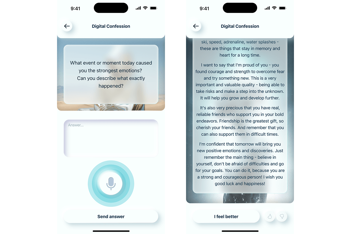 "Цифровая исповедь" – инструмент на основе ИИ для анализа текущего состояния пользователя для составления рекомендаций и поддержки: