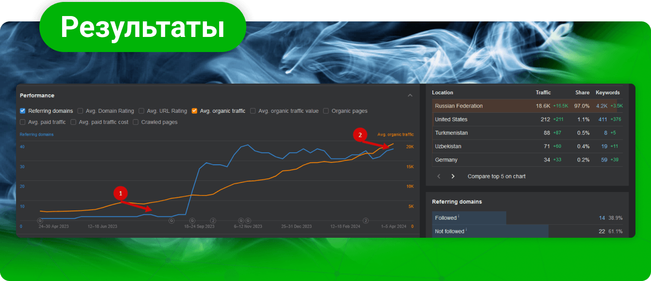 Согласно данным из ahrefs.com, органический трафик из Google вырос в 4 раза.