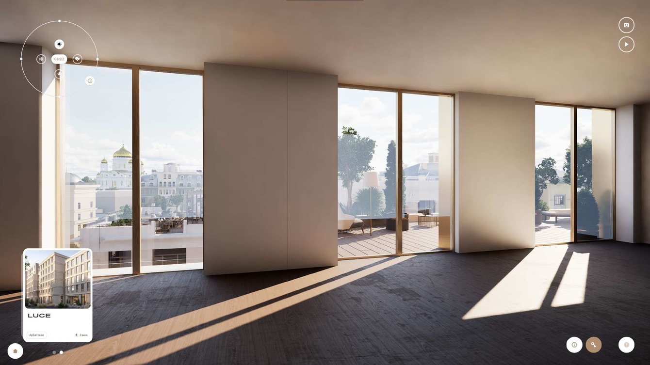 Возможность зайти в каждую квартиру, посмотреть вид из окна при различном освещении и в любое время года создает wow-эффект присутствия.