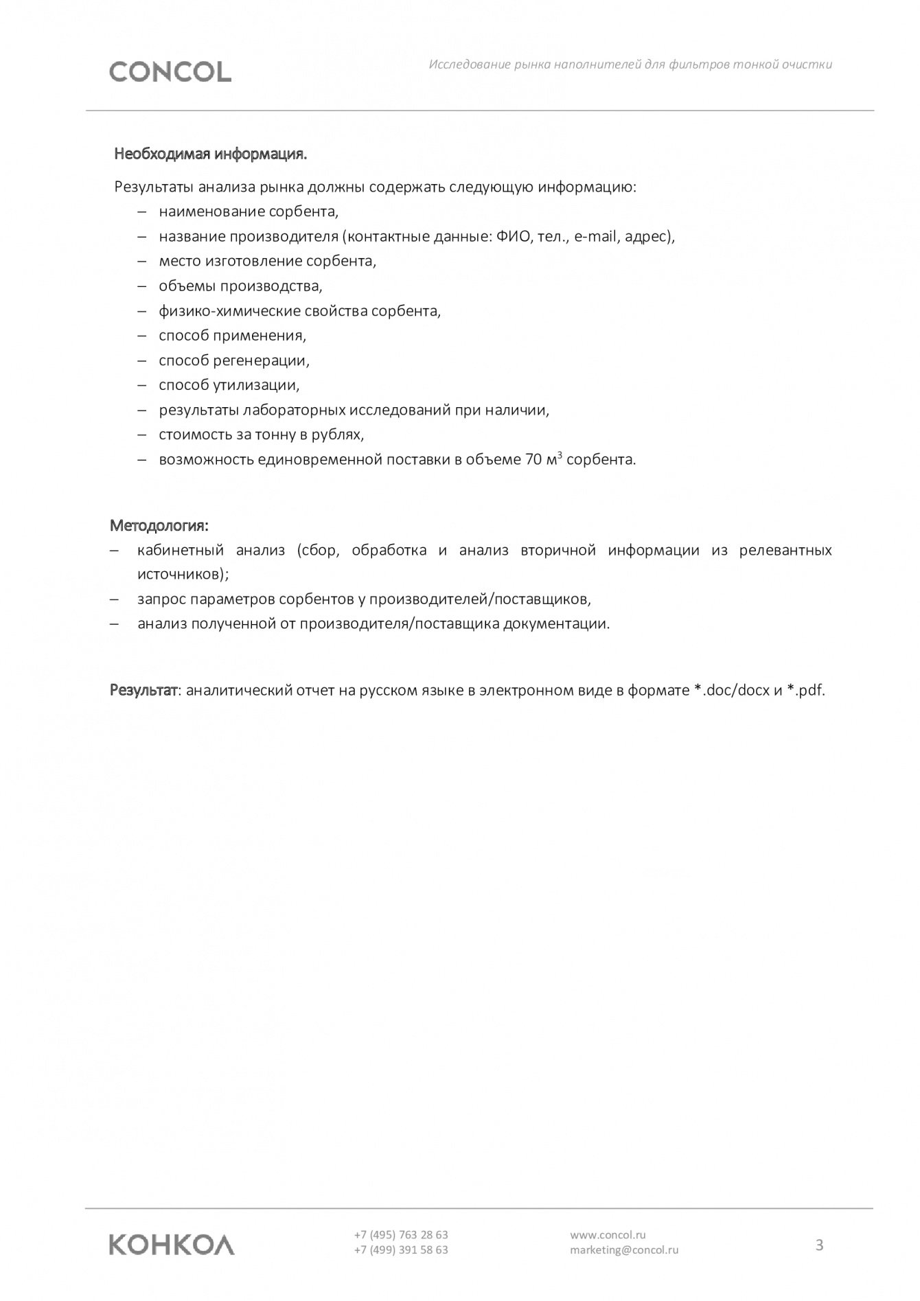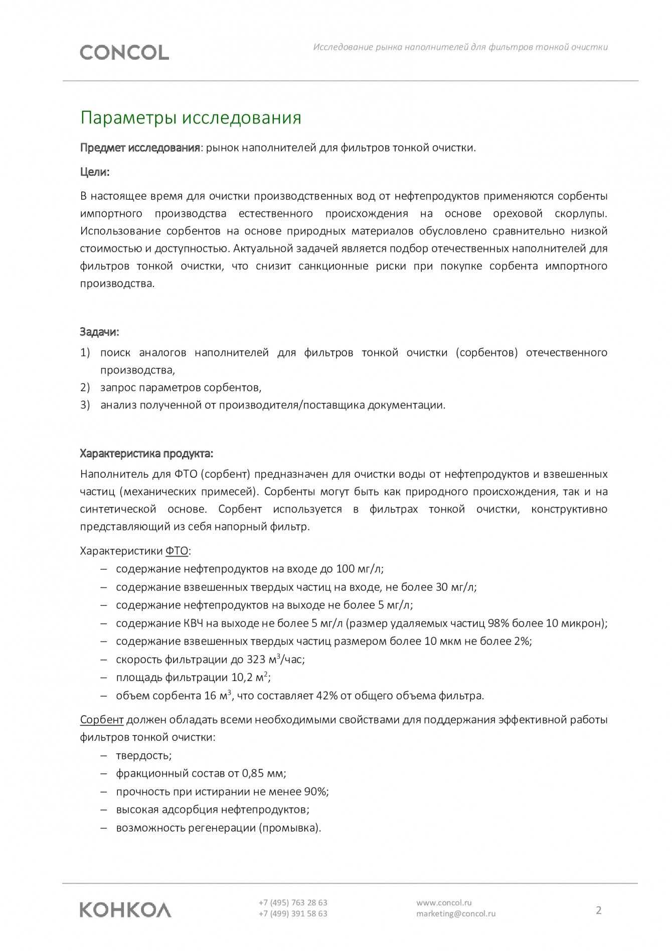 • Изучение рынка: анализ существующих российских производителей/поставщиков сорбентов, специализирующихся на фильтрации жидкостей, в частности нефти и нефтепродуктов.