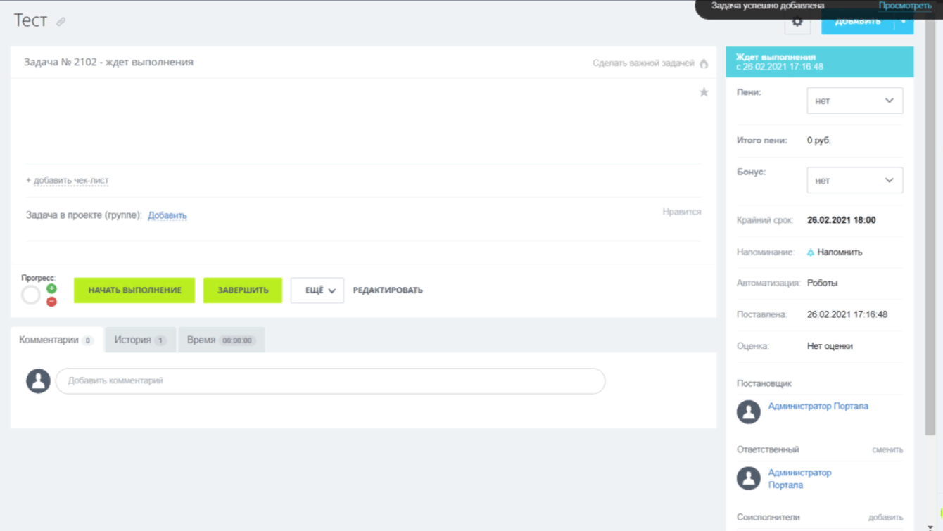 Скриншот 4. Тестовая задача в доработанном модуле.