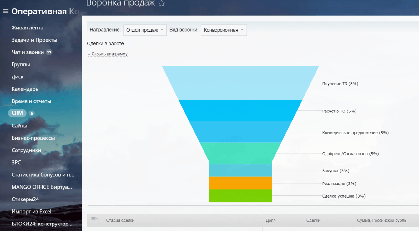 Скриншот 1. Воронка продаж.
