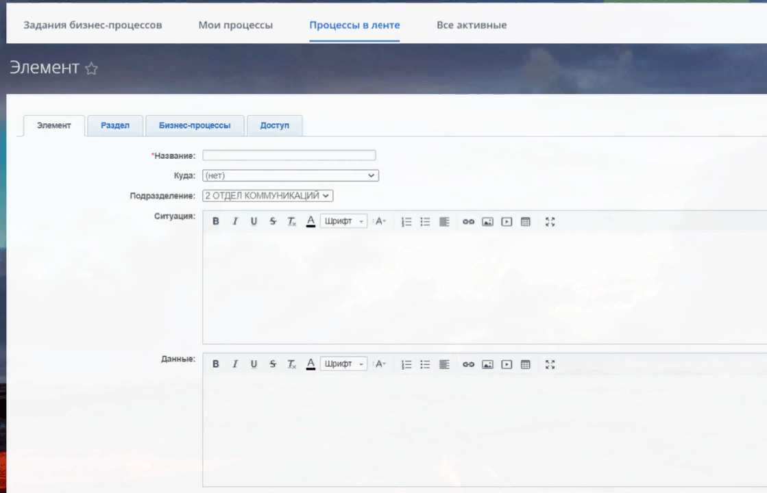 3. Бизнес-процесс ЗРС: автоматический бизнес-процесс согласования и принятия решения по различным нестандартным ситуациям. В форме модуля сотрудником будет прописываться проблема, собранные аналитические данные и итоговый вариант ее решения. ЗРС отправляется по командной линии в зависимости от выбранного подразделения согласно организационной схемы компании.