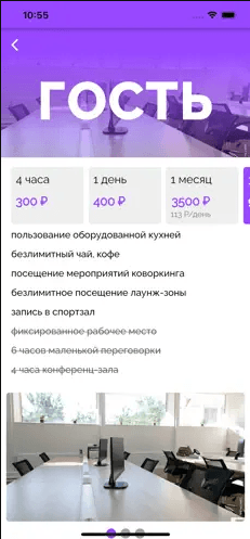 В приложении реализованы функции: спроектирован интерфейс и разработан дизайн приложения, реализован функционал регистрации пользователей, созданы и заполнены страницы с информацией о коворкинге.