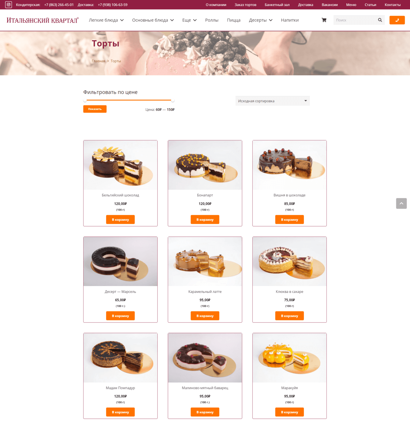 Клиент: Сеть кафе-кондитерских "Итальянский квартал"