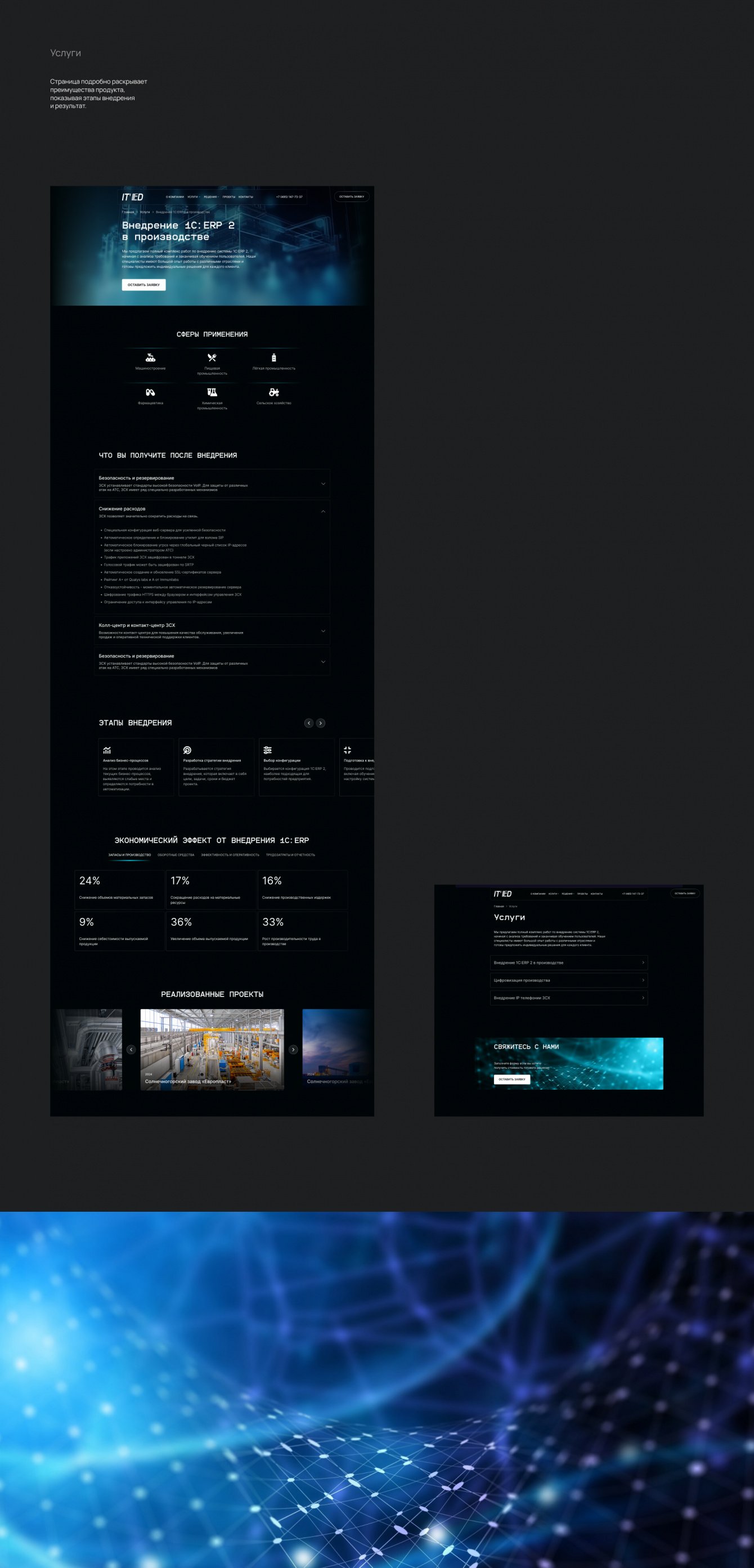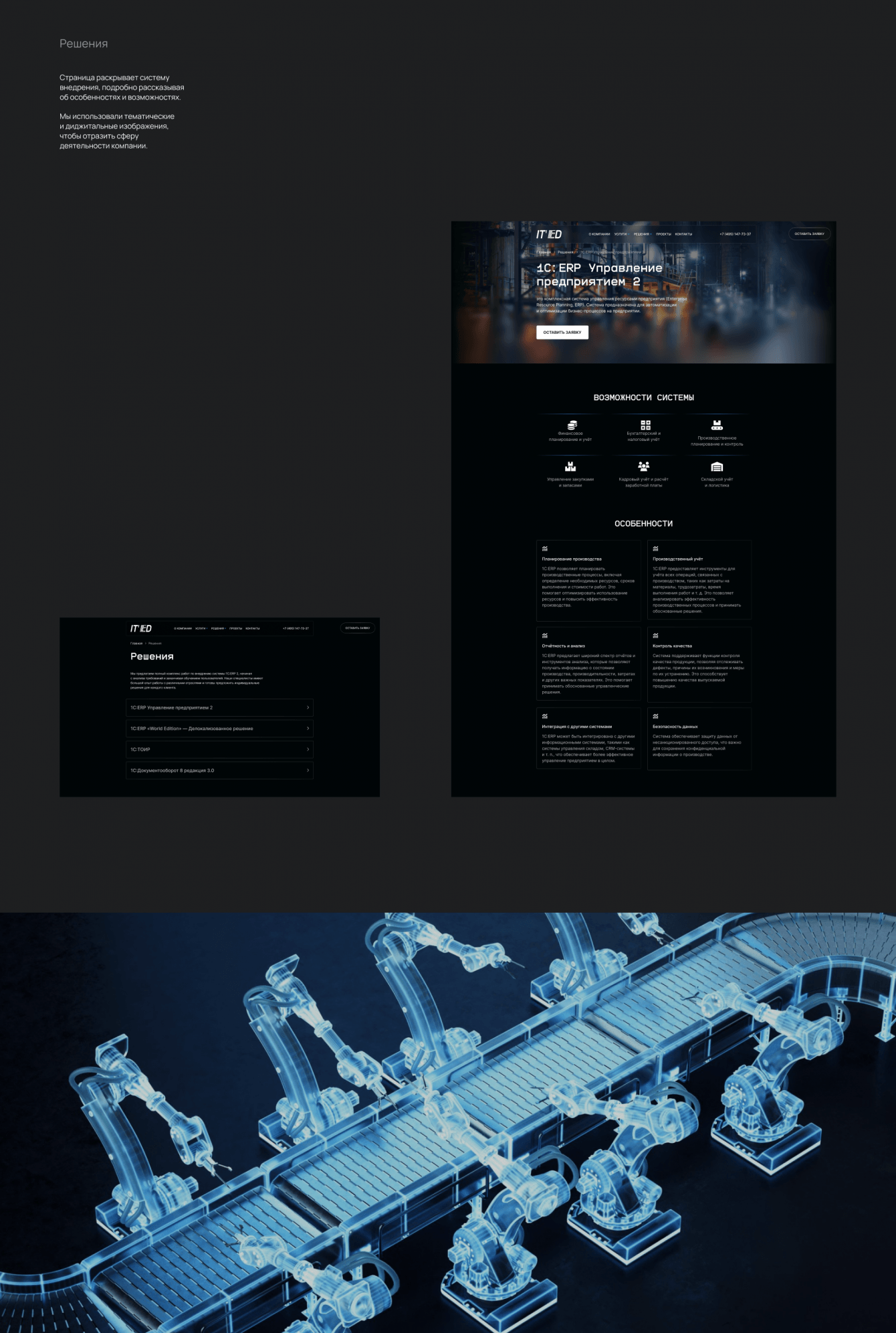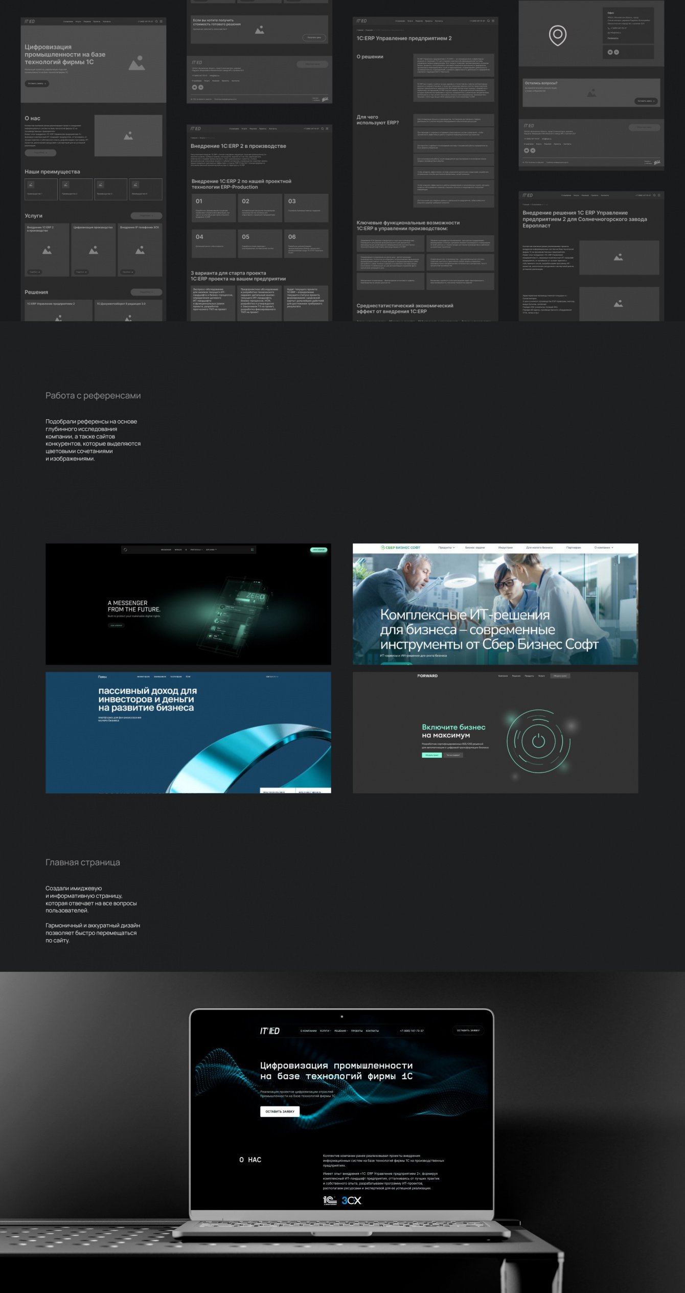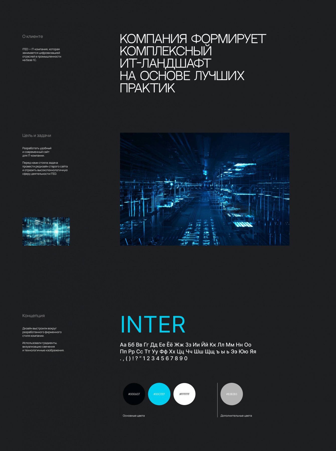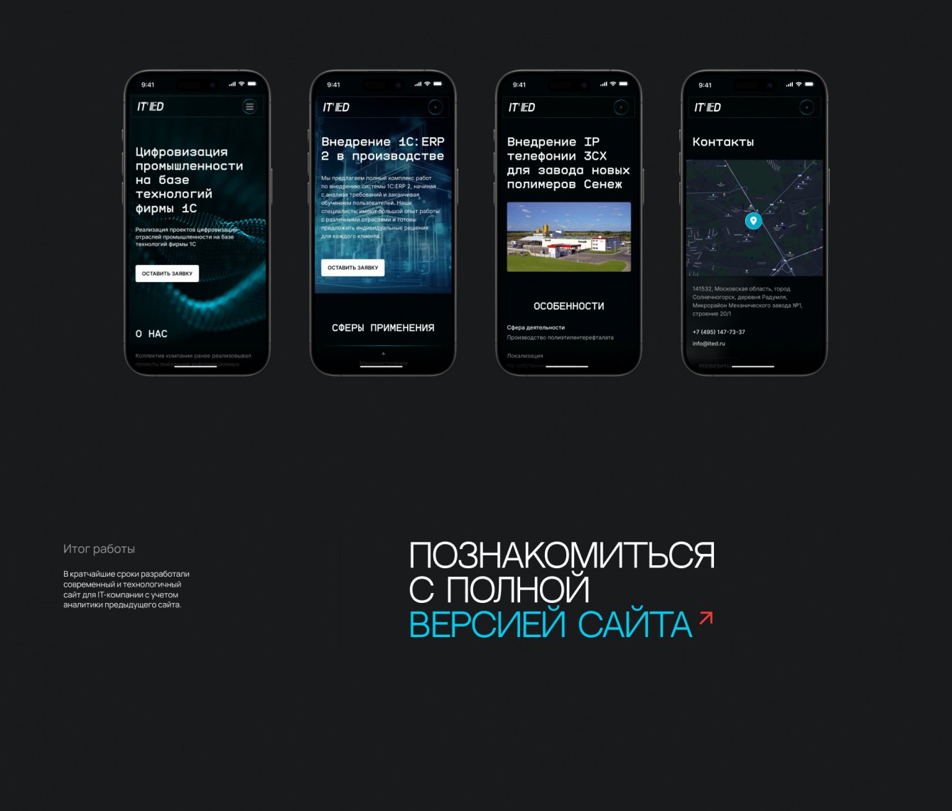 Перед нами стояла задача провести редизайн старого сайта и отразить высокотехнологичную сферу деятельности ITED.