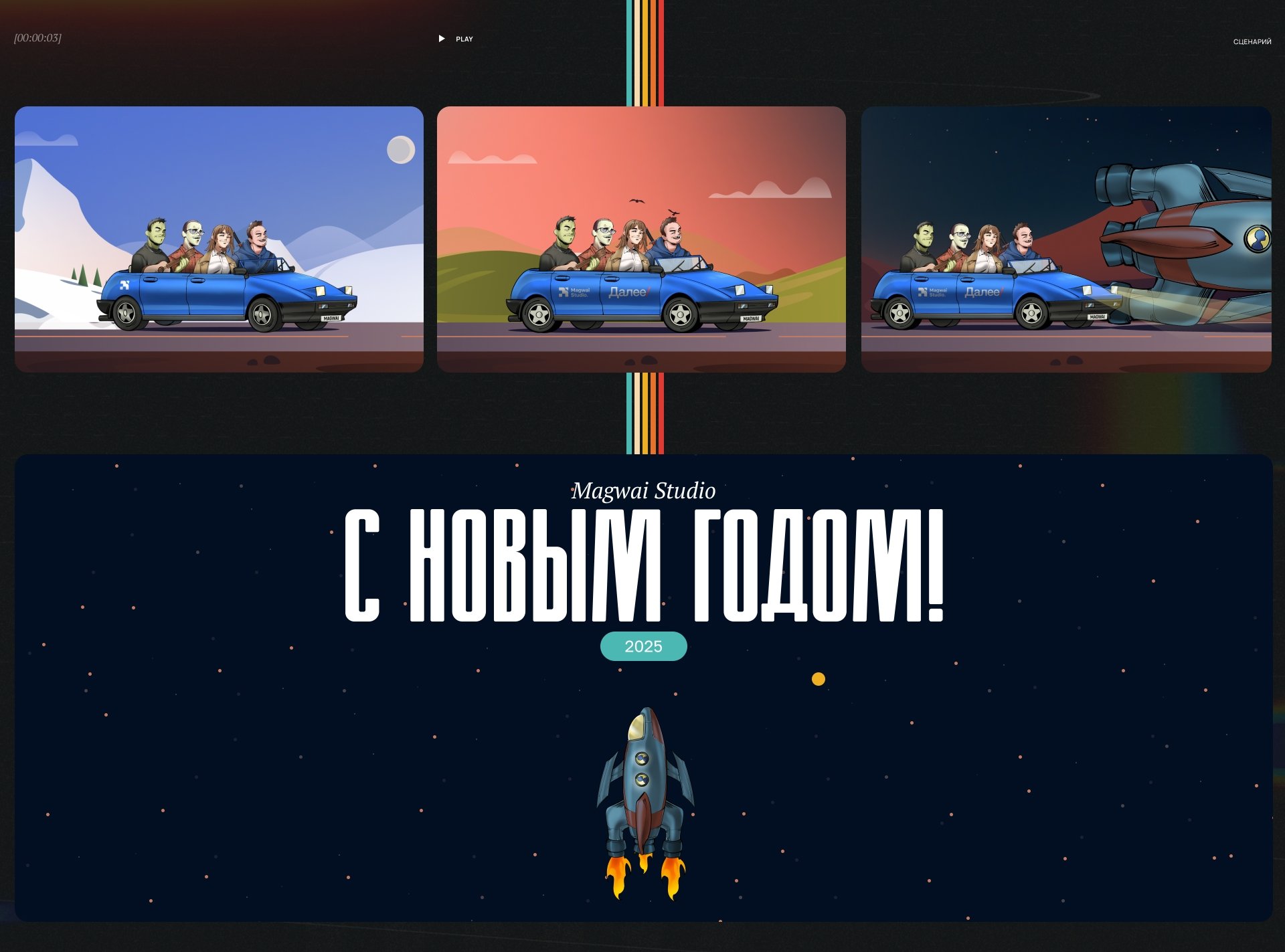 А финал мы оставили открытым: после пройденного маршрута герои буквально улетают в космос. Потому что завершение года для нас — это не точка, а скорее старт следующего масштаба.