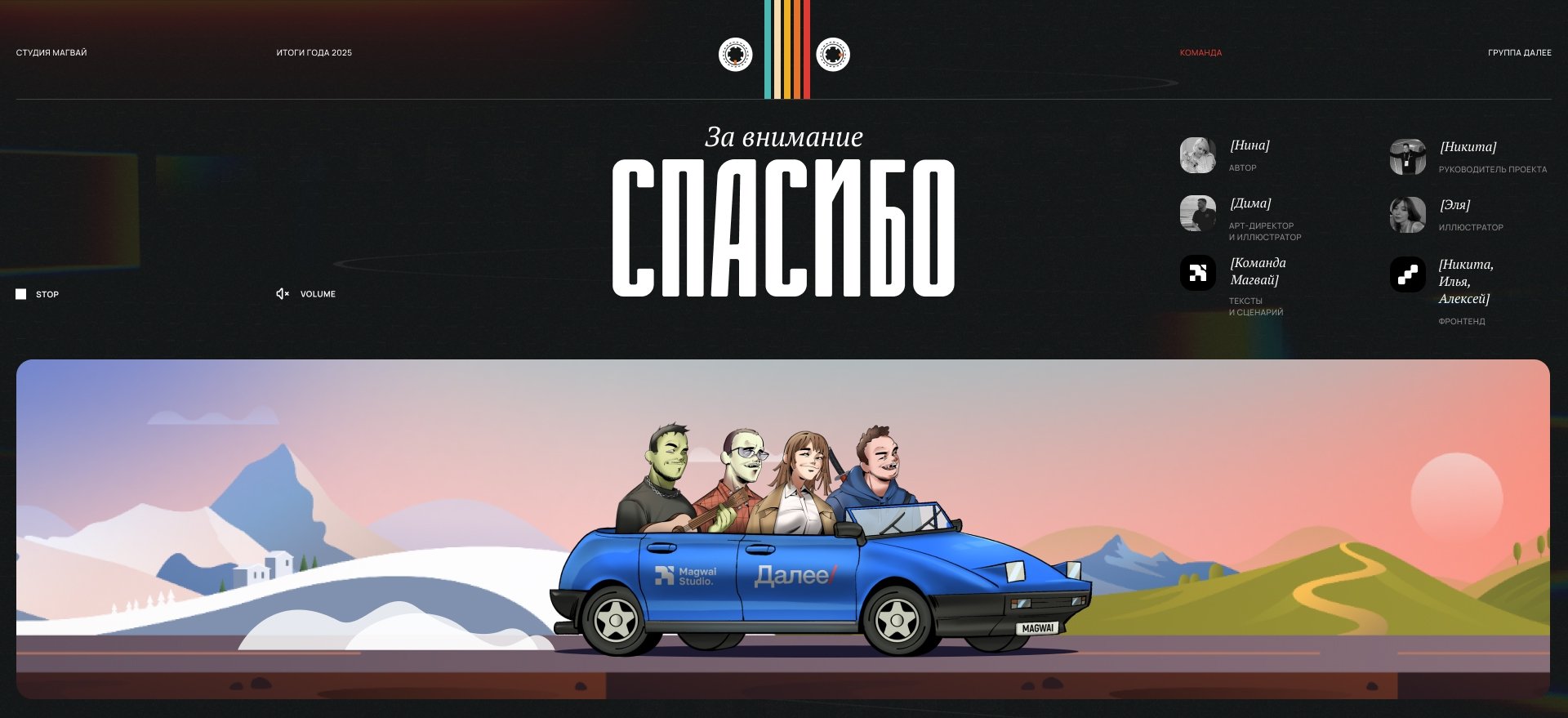 Для нас этот проект — не просто упаковка цифр и не просто способ красиво рассказать о результатах. Это форма живой рефлексии, способ поделиться тем, чем на самом деле наполнен Магвай: нашей атмосферой, нашей самоиронией, нашим драйвом, нашими сомнениями, нашей внутренней оптикой.