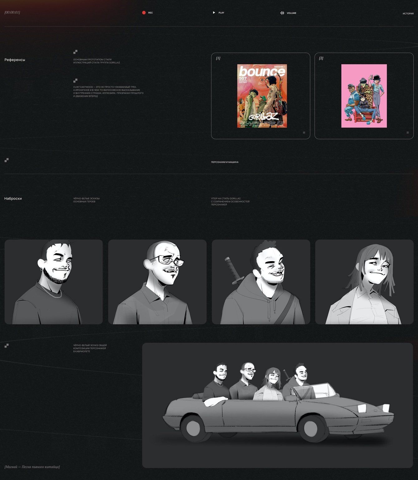 Параллельно с этим дочь Нины, Ева, которая серьезно занимается рисованием, делала скетчи в эстетике аниме и музыкальных блокбастеров. И в какой-то момент эти два потока — музыкальное настроение Gorillaz и визуальный язык быстрых, характерных скетчей — сошлись.