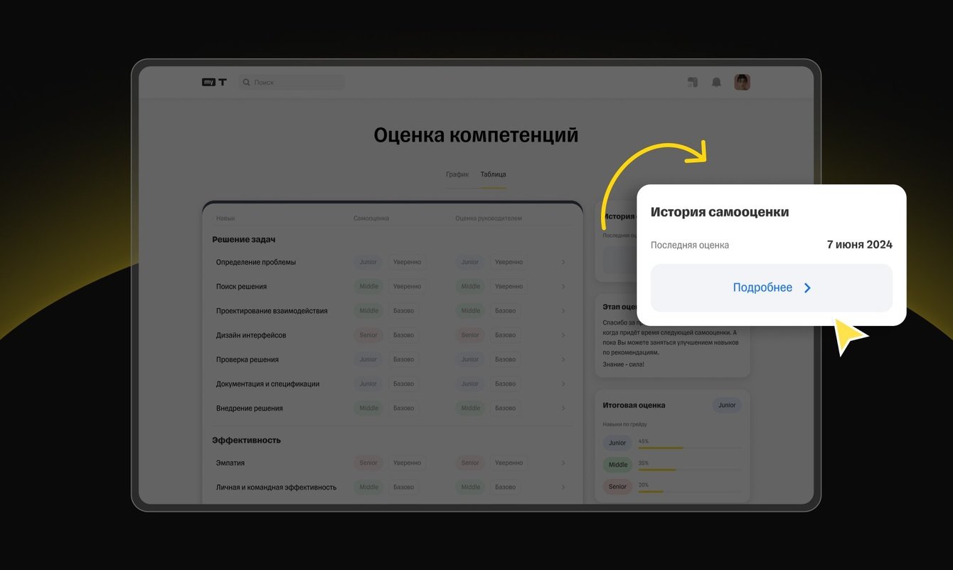 5. Наглядное отображение уровня компетенций и прогресса по каждой из них в интерфейсе вдохновляет сотрудников.