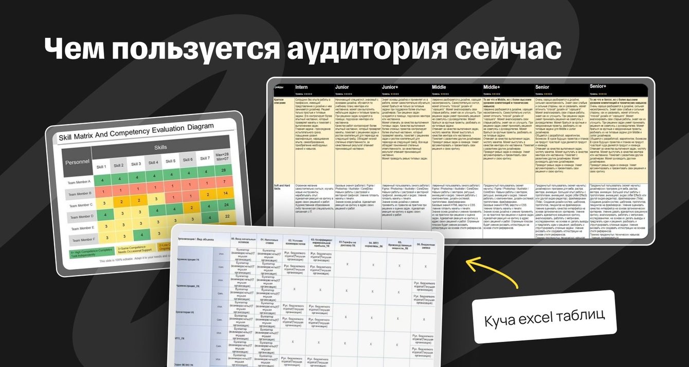 Какие боли повторяются чаще всего? Мало пунктов оценки, нет автоматизации (вся работа идет через excel), нет отдельной системы под каждый отдел, нет рекомендаций по развитию навыков, нет понятного описания к каждому навыку.