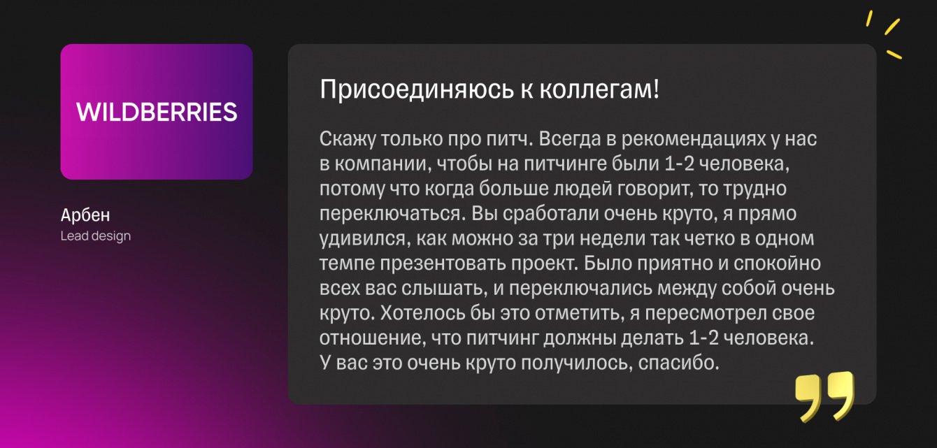 И вот прототип полностью готов, настало время защитить его. В жюри - тимлиды из Сбера, Wildberries, ВК, Леруа Мерлен, студии МАХ. Наша команда Тинькофф из 6 человек - единственная команда, проект которой защищают все её участники.
