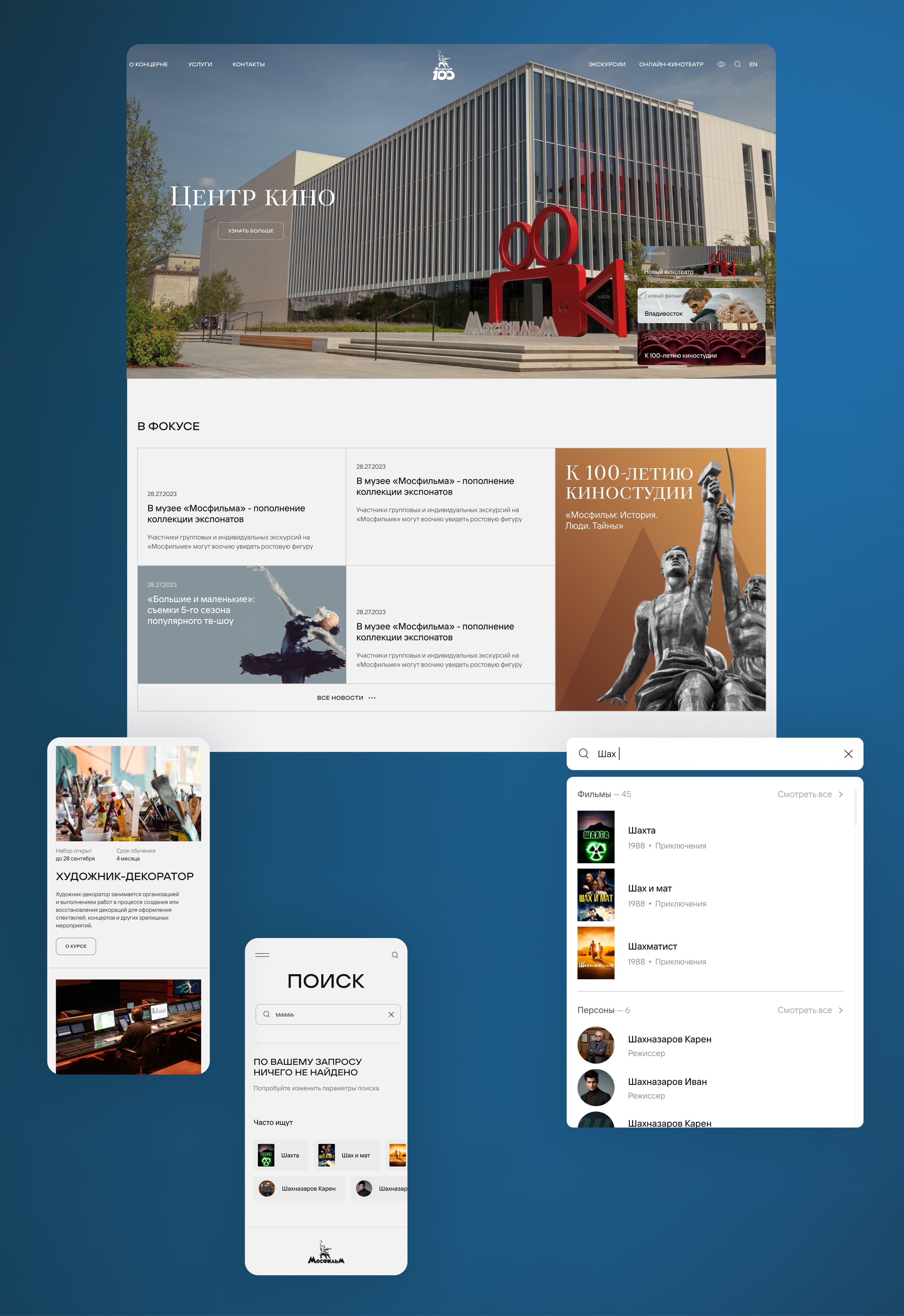 В 2024 году «Мосфильму» исполнилось 100 лет — целый век фильмов, которые мы знаем наизусть и которые стали частью нашей истории и души. К юбилею студия решила обновить сайт, чтобы сделать его современным и функциональным, но при этом по-настоящему близким для всех: от тех, кто смотрел классику с детства, до тех, кто только открывает для себя «Иронию судьбы» или «Карнавальную ночь». Главная цель проекта — создать сайт, который не просто информирует, а возвращает нас к тому самому ощущению тепла и единения, когда праздничным зимним вечером семья собирается перед телевизором.