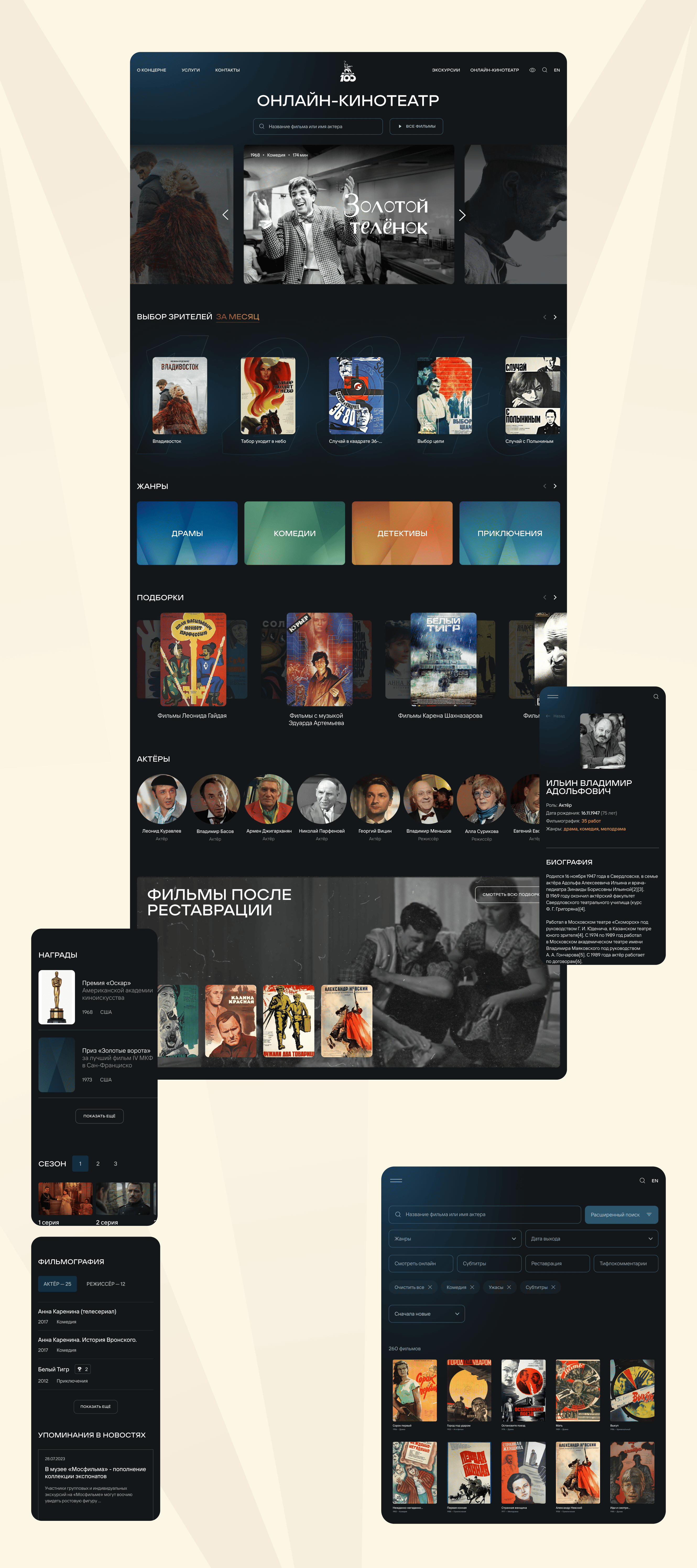 Новая айдентика формирует эмоциональную связь с аудиторией, отражая историческую значимость киностудии и внося её в современную digital-среду. Широкая сетка, крупные заголовки, удобная навигация — всё это работает на ощущение легкости. Сайт стал не просто проектом, а цифровым воплощением культурного кода страны, соединяющим прошлое и настоящее.