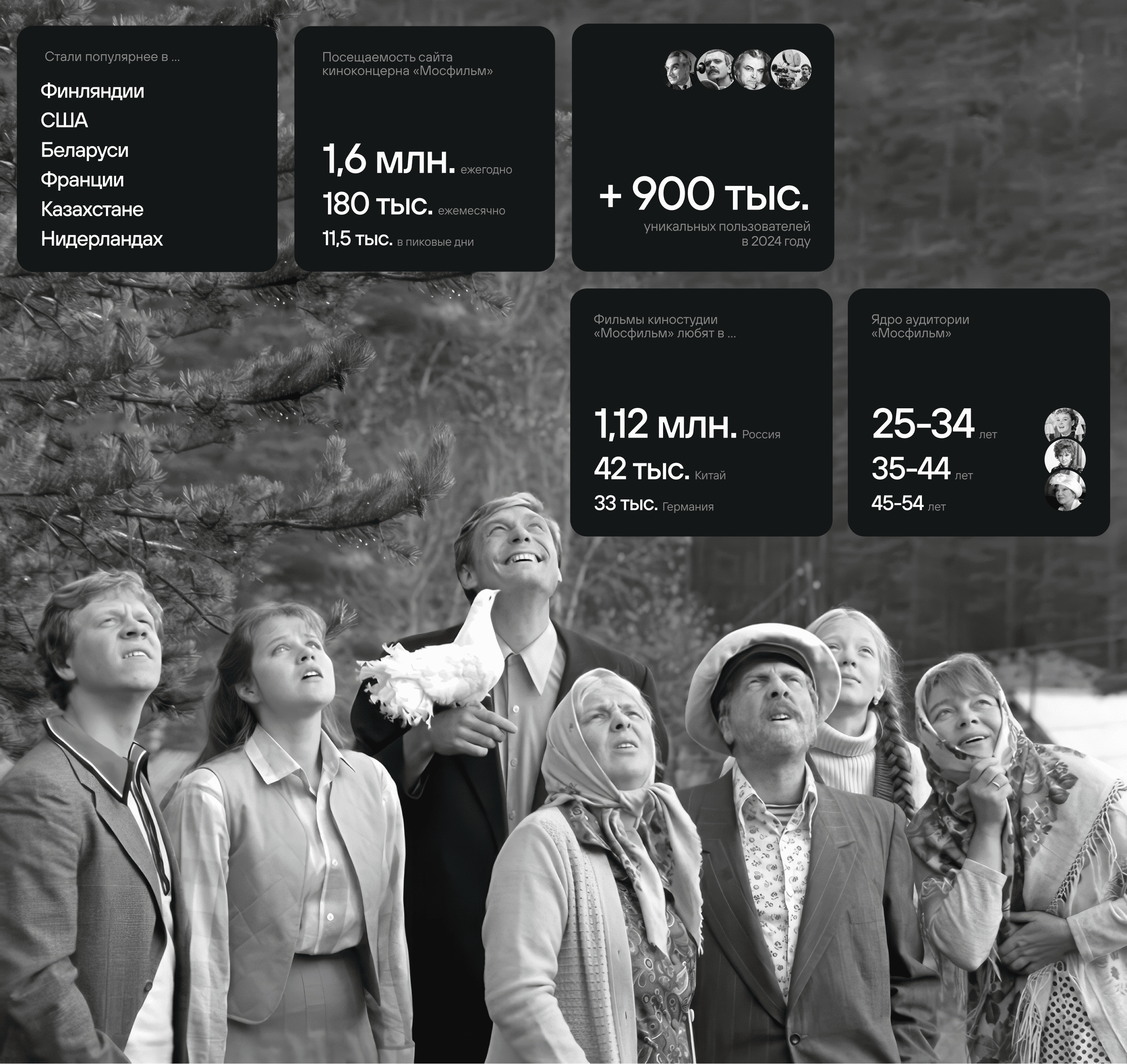 Сайт был запущен к 100-летнему юбилею. Это не просто новый ресурс, а цифровое воплощение «Мосфильма»: его масштаба и радости, которые он дарит зрителям на протяжении целого столетия.