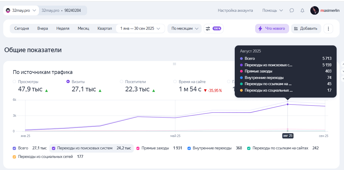 Посещаемость выросла с 345 до 5 713 уникальных посетителей в месяц — рост более чем в 16 раз
