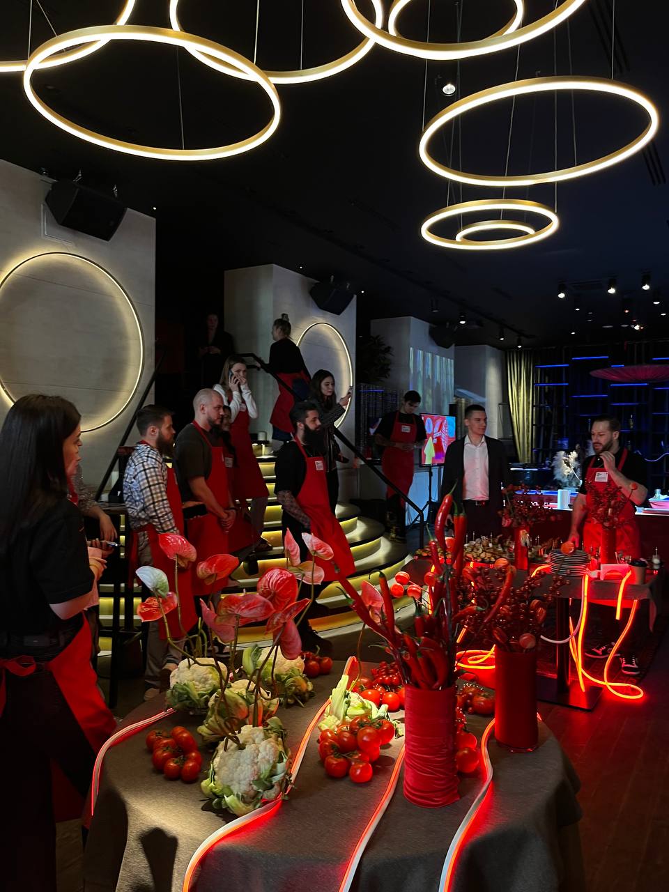 На тусовке ребята поделились на команды и состязались в приготовлении местных блюд под надзором шефа. Получился вау-эффект, посыпались бесплатные отметки!