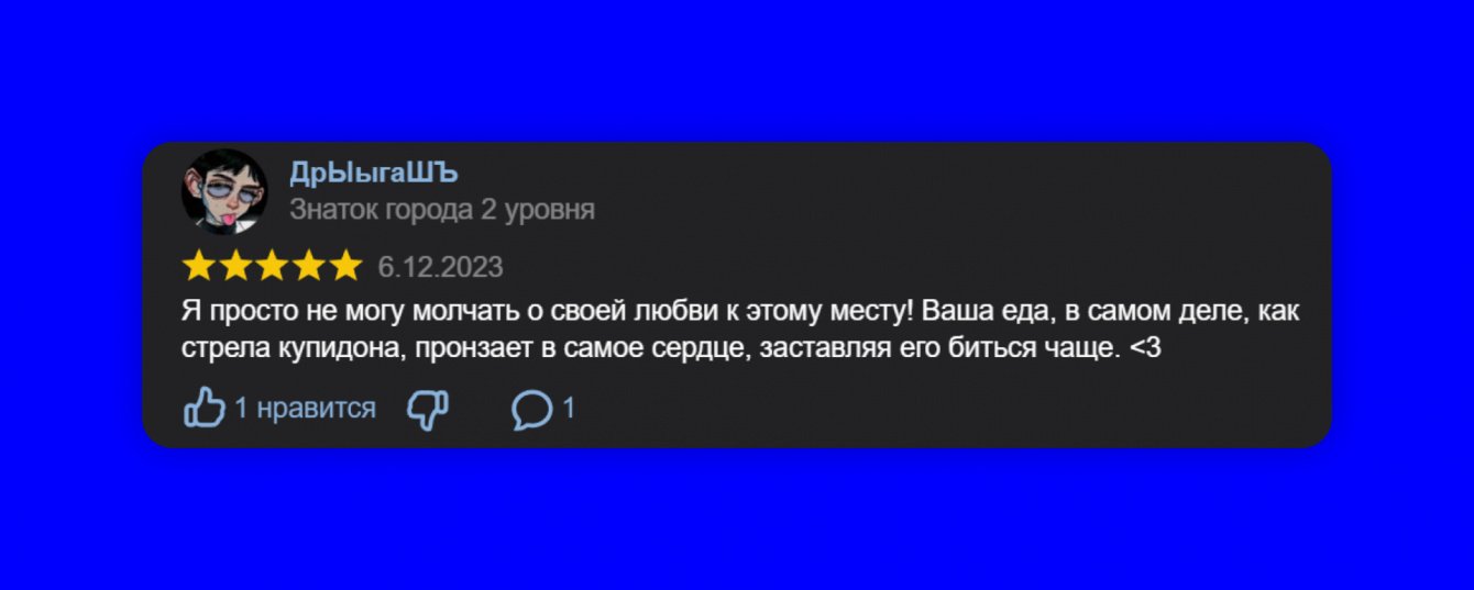 Особенно понравился подход: полное погружение, неограниченные правки, учёт всех моих пожеланий и крутой итоговый результат. Теперь Купидонер место с особенным шармом, а не просто заведение, в котором можно перекусить. Клиентам нравится, а это самое главное.