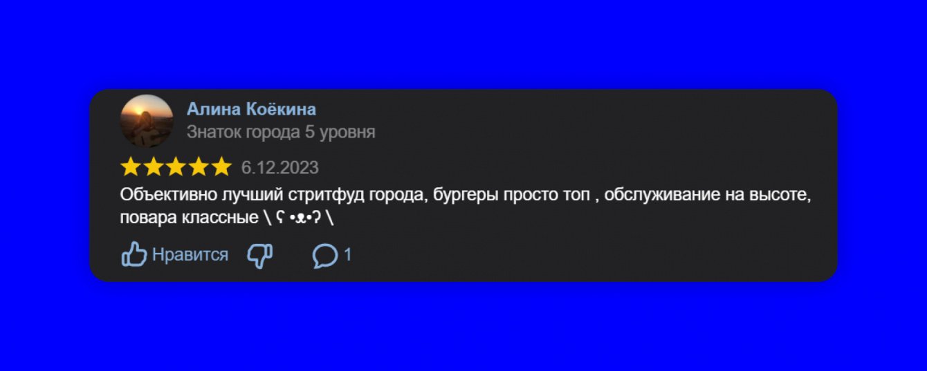 Изначально были сомнения: точно ли получу, что мне нужно? Сомнения отпали, когда я понял, как выстраивается процесс разработки. В итоге мы вместе превратили моё заведение в бренд, который знают и узнают в городе. Уже 4 года сотрудничаем, выросли вместе — сейчас у ребят команда специалистов, и я продолжаю обращаться к ним с разными задачками.
