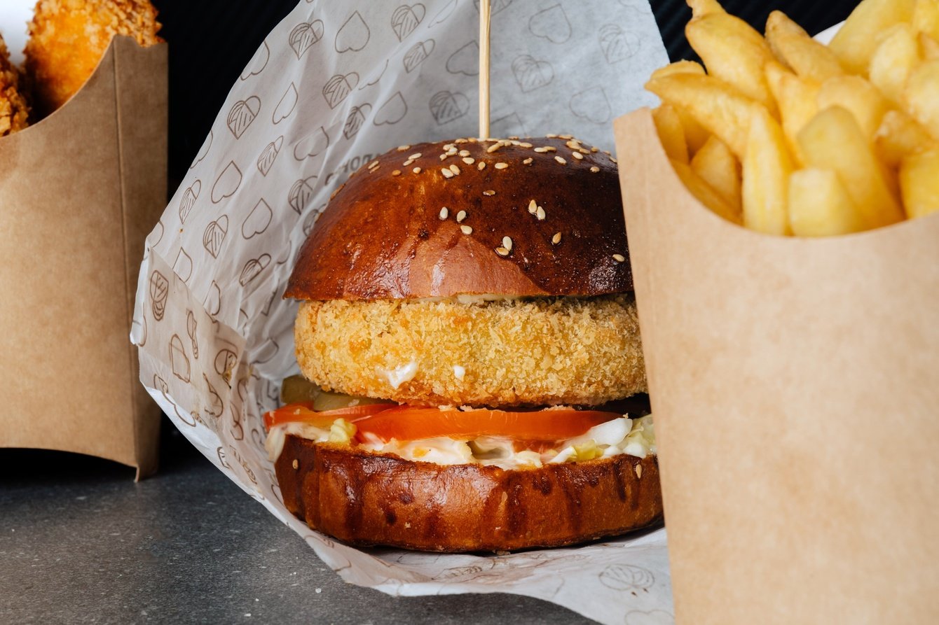 Используя «конструктор», мы разработали полную упаковку дизайна: оформление точки, упаковку еды, вывески, брошюры, визитки, карту постоянного клиента и прочее из гайдлайна.