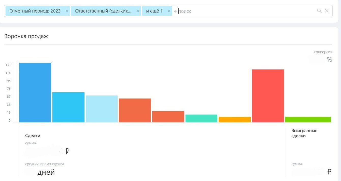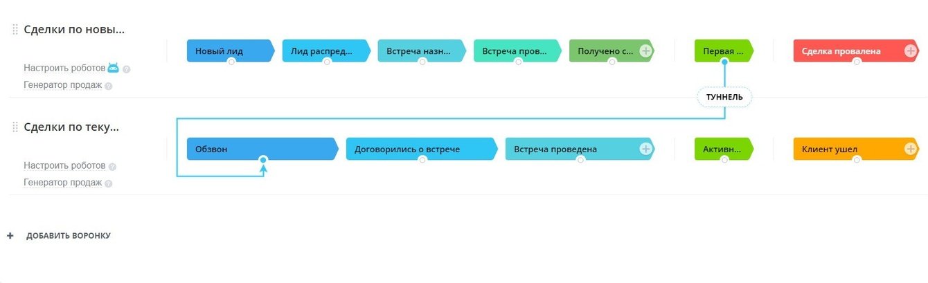 Остановились не на классической воронке продаж, где учитываются только сделки, а на двухуровневой, где есть воронка «лиды», которая перетекает в «сделку».