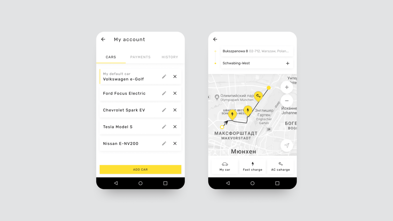Начали с определения функций, которые нужны пользователю в первую очередь — это поиск и бронирование зарядной станции. С первым проблем не возникло, а вот с отображением станций возникла трудность.