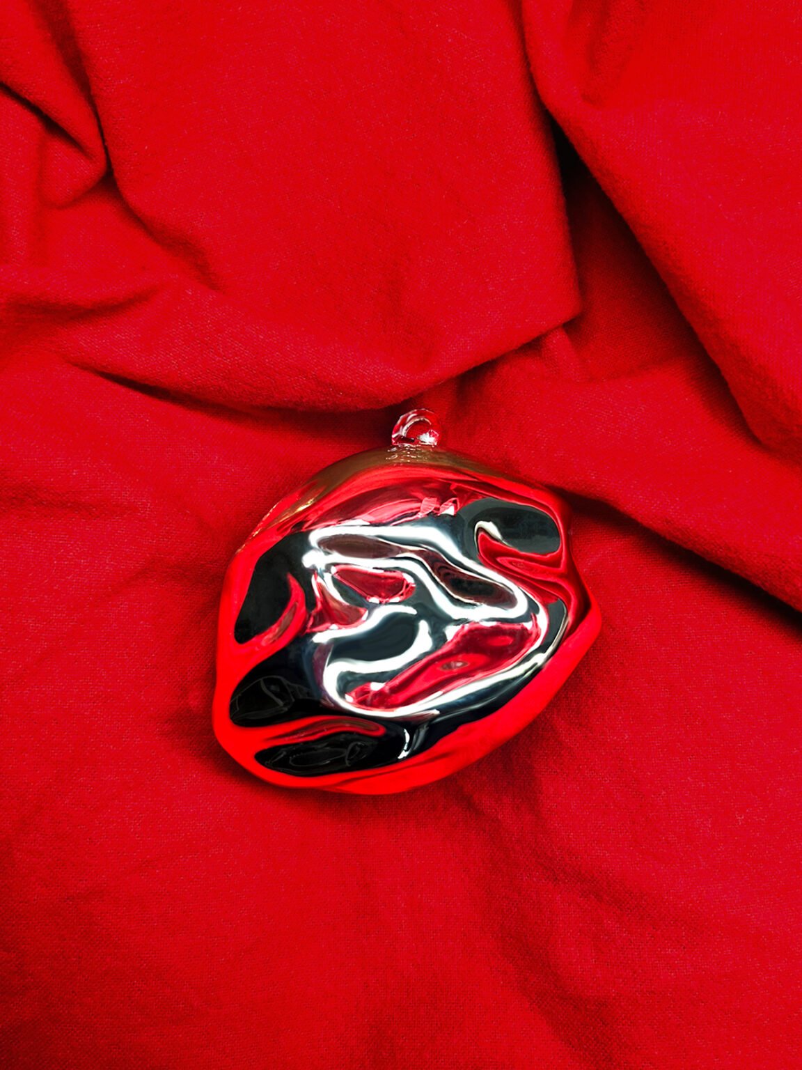 «Капля времени» — ёлочное украшение, прошедшее путь трансформации. Изначально лаконичная и совершенная форма шара обретает изгибы и неровности. Как человек, претерпевает изменения, растет, становится сложнее и глубже. Так и форма игрушки неидеальная, измененная, приобретает естественные шероховатости, становясь интереснее и выразительнее.